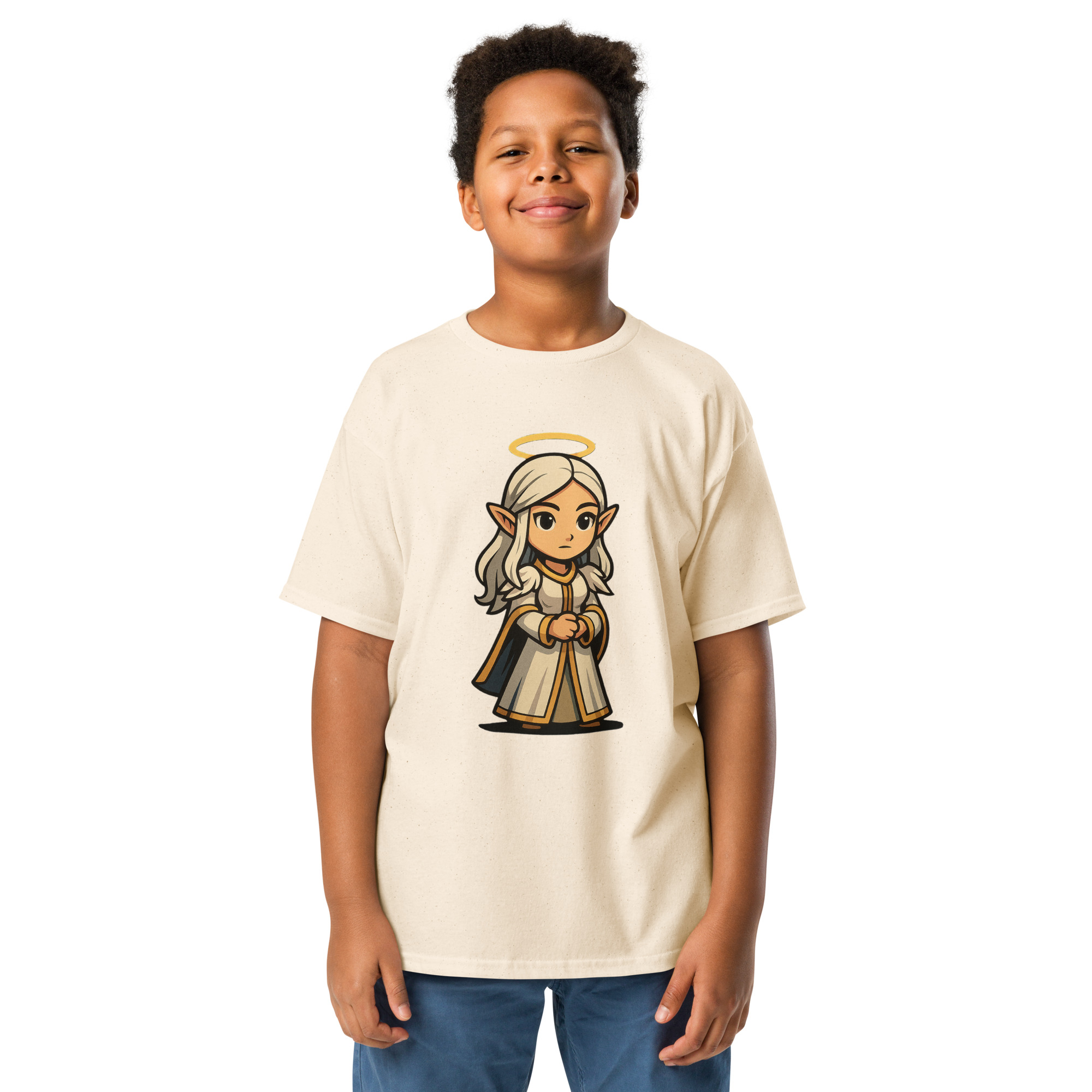 Ein sanfter Engel mit goldenen Akzenten – ideal für Fantasy- und Kunstliebhaber.