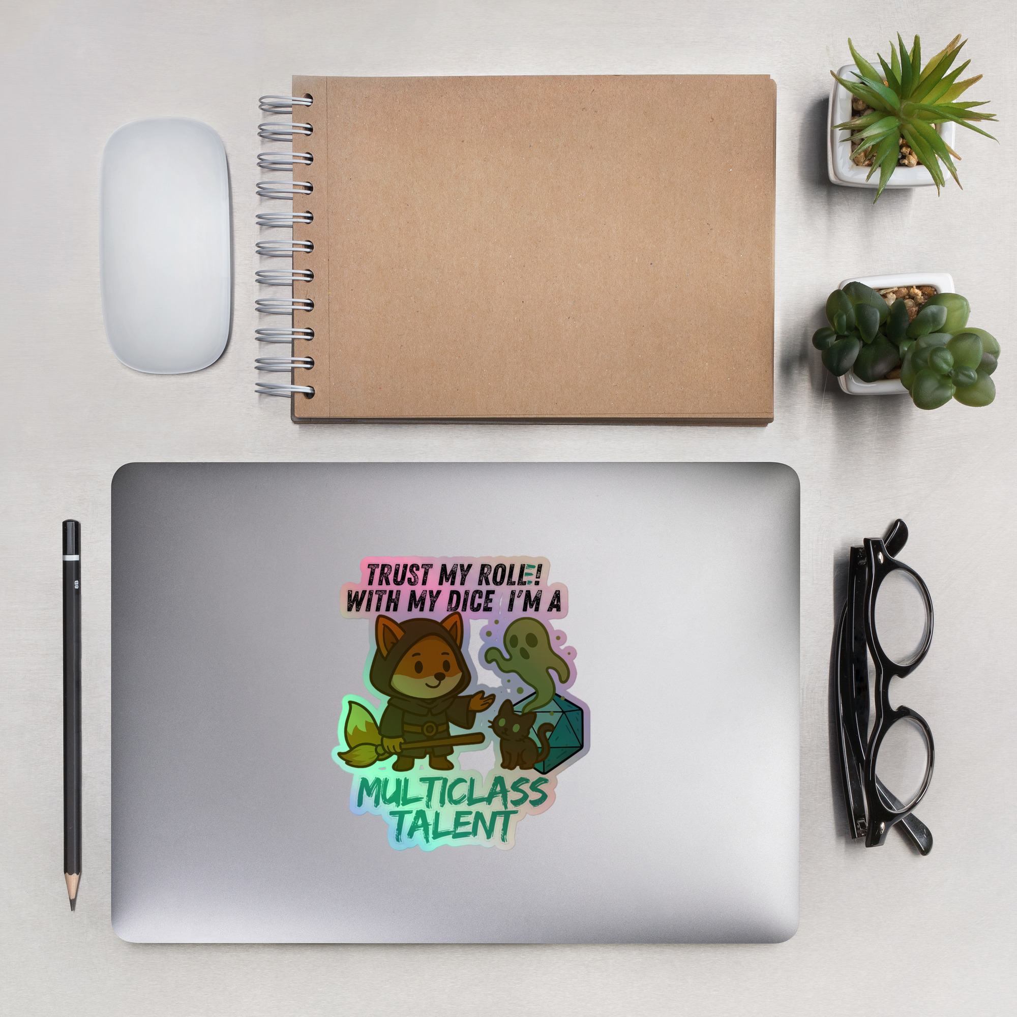 Vertraue seinem Wurf! Mit seinem W20 und alle seinen Fähigkeiten ist dieser Fuchs ein wahres Multitalent. Dieses Design ist Teil der “DiceFox – Trust my roll(e)” Serie.