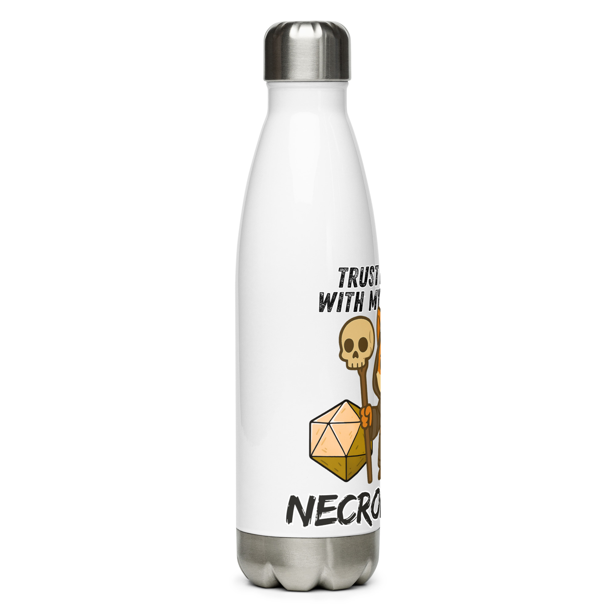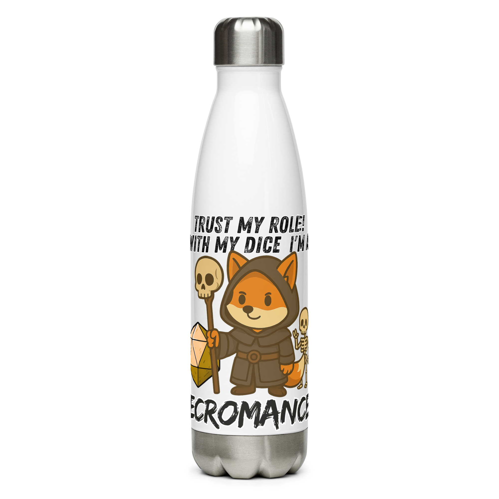 “Vertraue auf seinen Wurf! Mit seinem beinernen W20 ist er ein wahrer Nekromant. Der Fuchsnekromant ist nie allein, an seiner Seite steht sein stummer, kalter und bleicher Begleiter. Dieses Design ist Teil der “”DiceFox – Trust my roll(e)! Serie”””