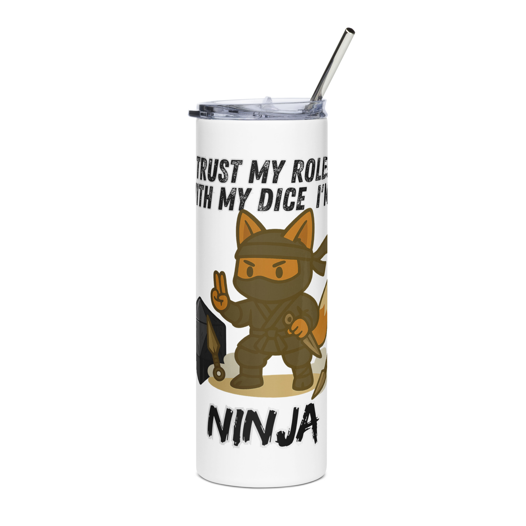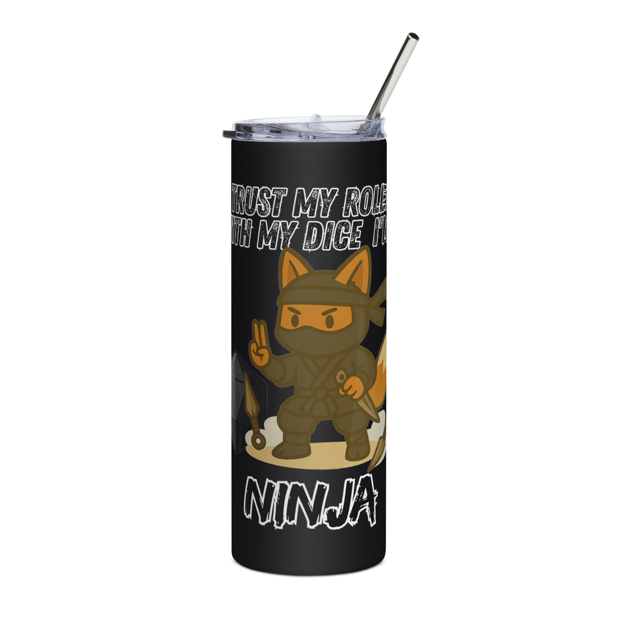 Vertraue dem Wurf des Ninjas! Mit seinem W20, Kunai und Jutsu ist dieser Fuchs ein ausgesprochen geheimnissvoller und schneller Meister der Schatten. Dieses Design ist Teil der “DiceFox – Trust my roll(e)” Serie.