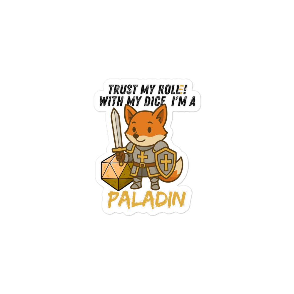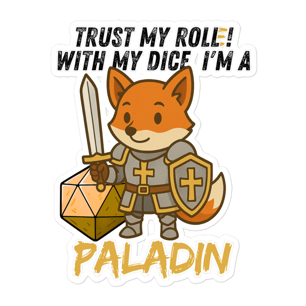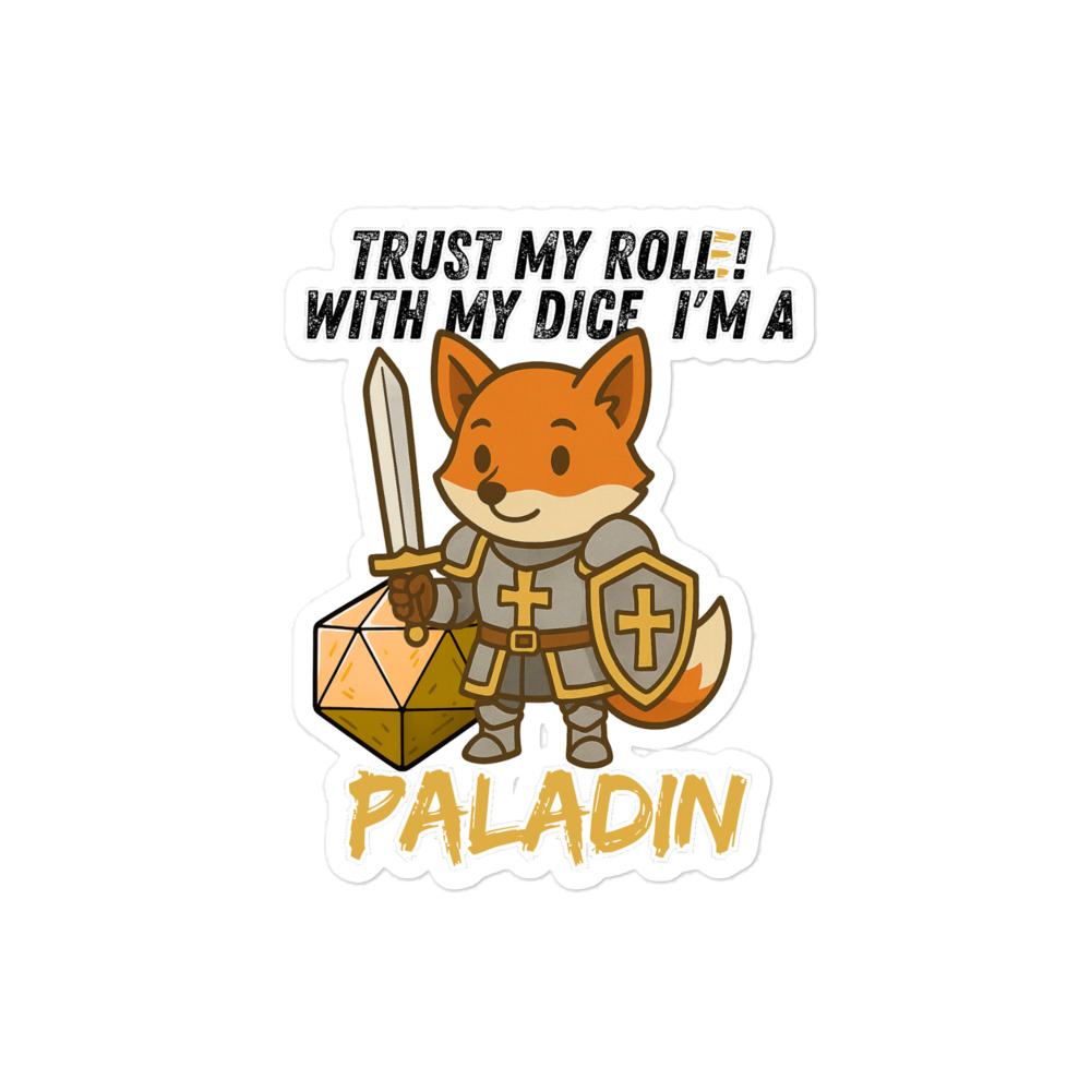 Vertraue seinem Wurf! Mit seinem W20 und heiliger Kampfkraft ist dieser Fuchs ein mächtiger Paladin. Dieses Design ist Teil der “DiceFox – Trust my roll(e)” Serie.