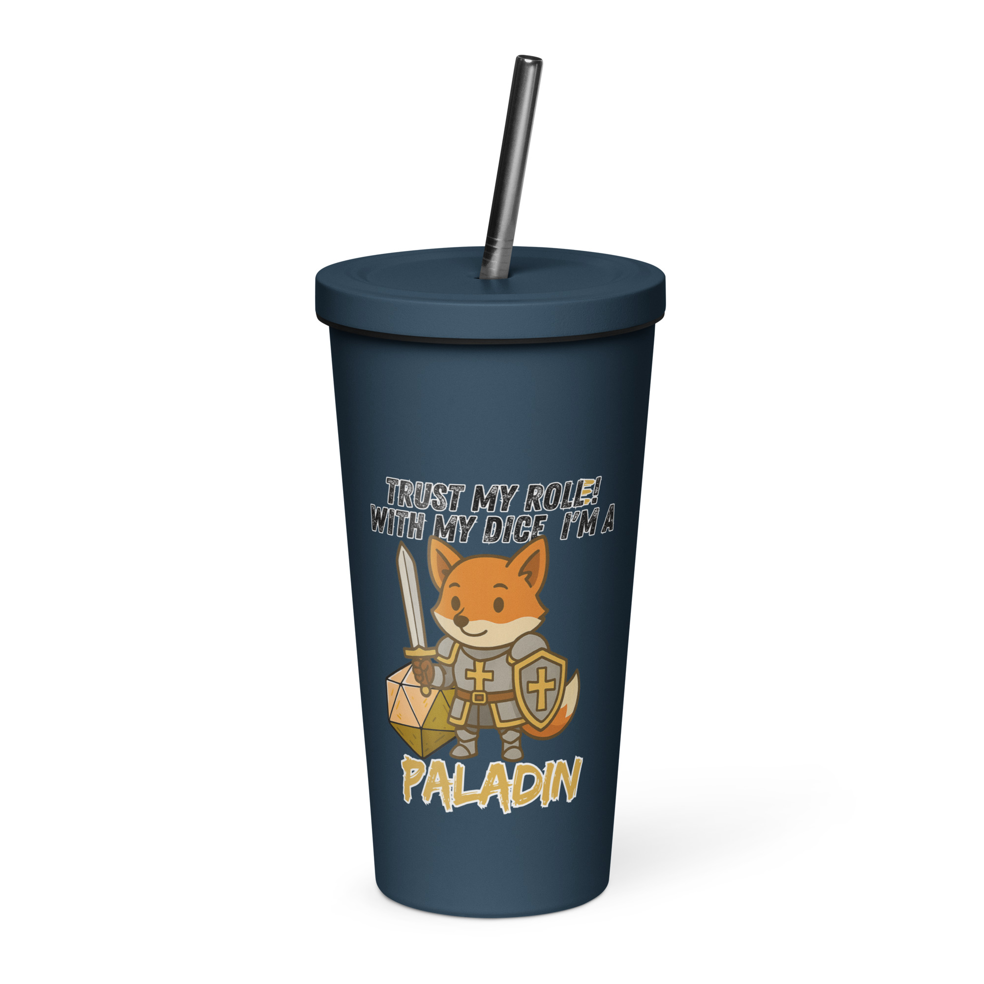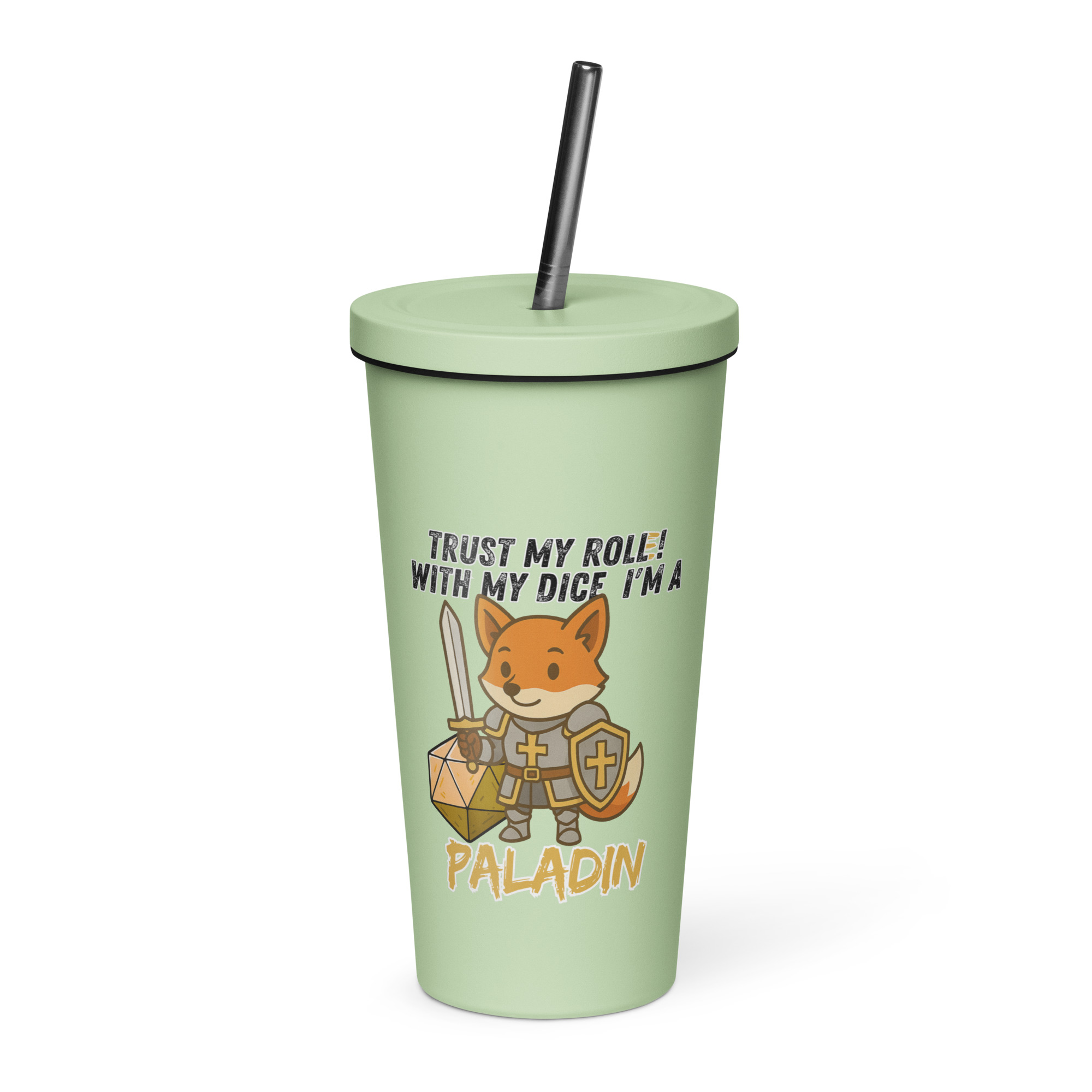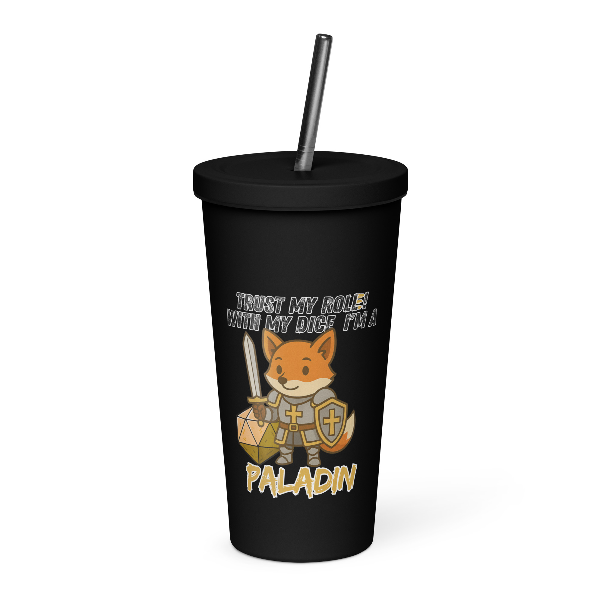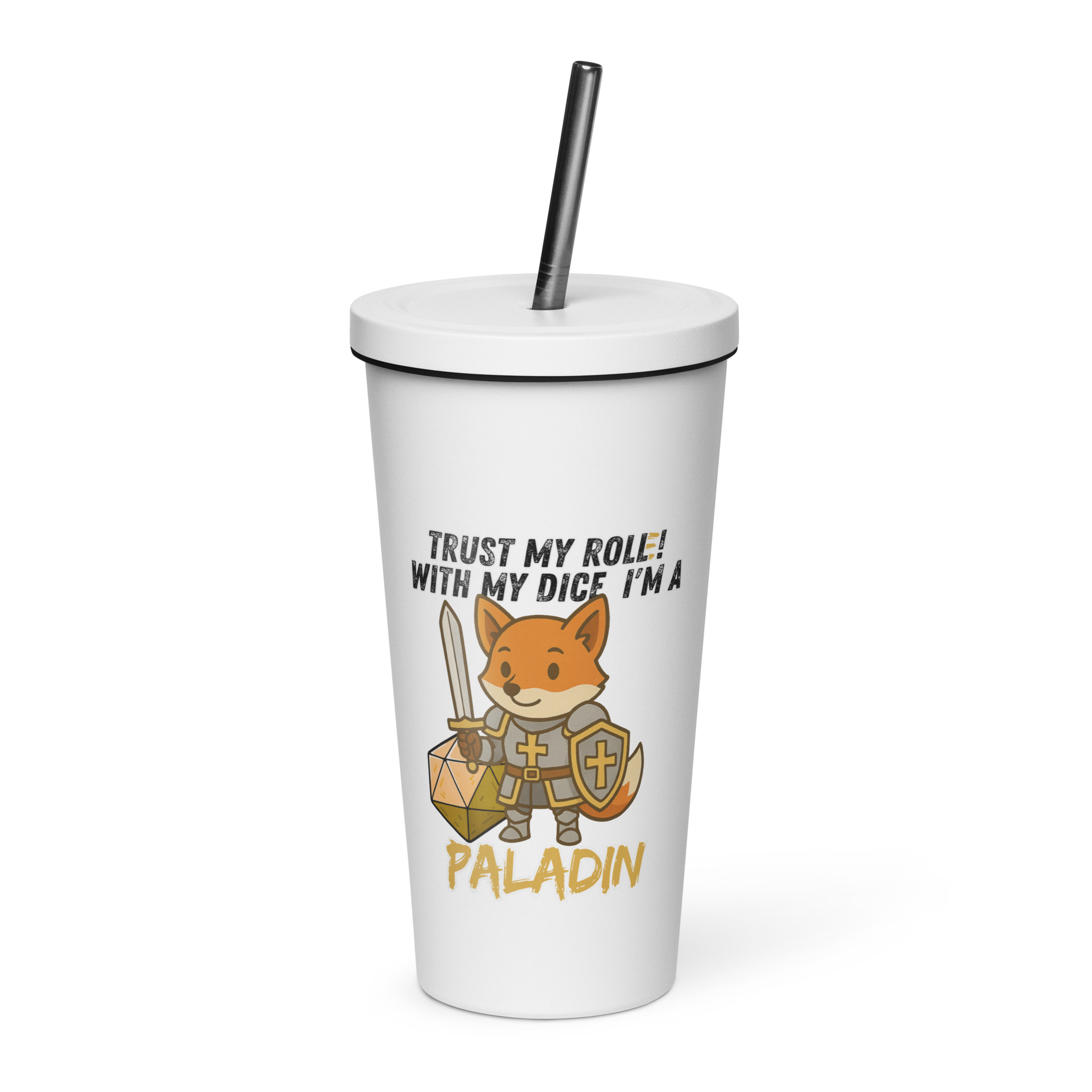 Vertraue seinem Wurf! Mit seinem W20 und heiliger Kampfkraft ist dieser Fuchs ein mächtiger Paladin. Dieses Design ist Teil der “DiceFox – Trust my roll(e)” Serie.