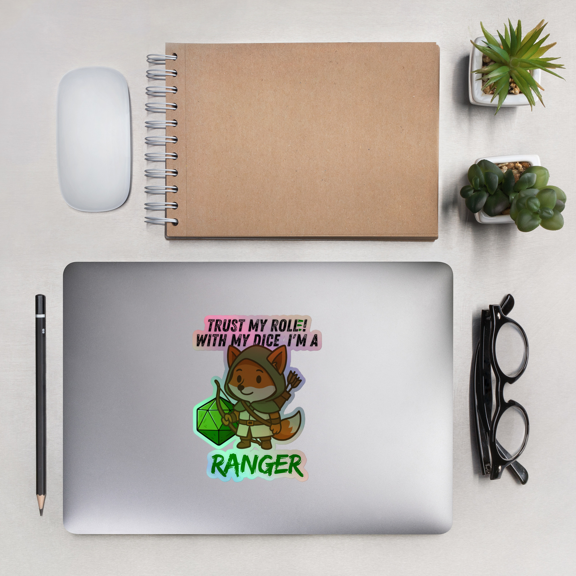 Vertraue seinem Wurf! Mit seinem Bogen und seinem W20 ist er treffsicher wie kaum ein anderer. Dieses Design ist Teil der “DiceFox – Trust my roll(e)” Serie.