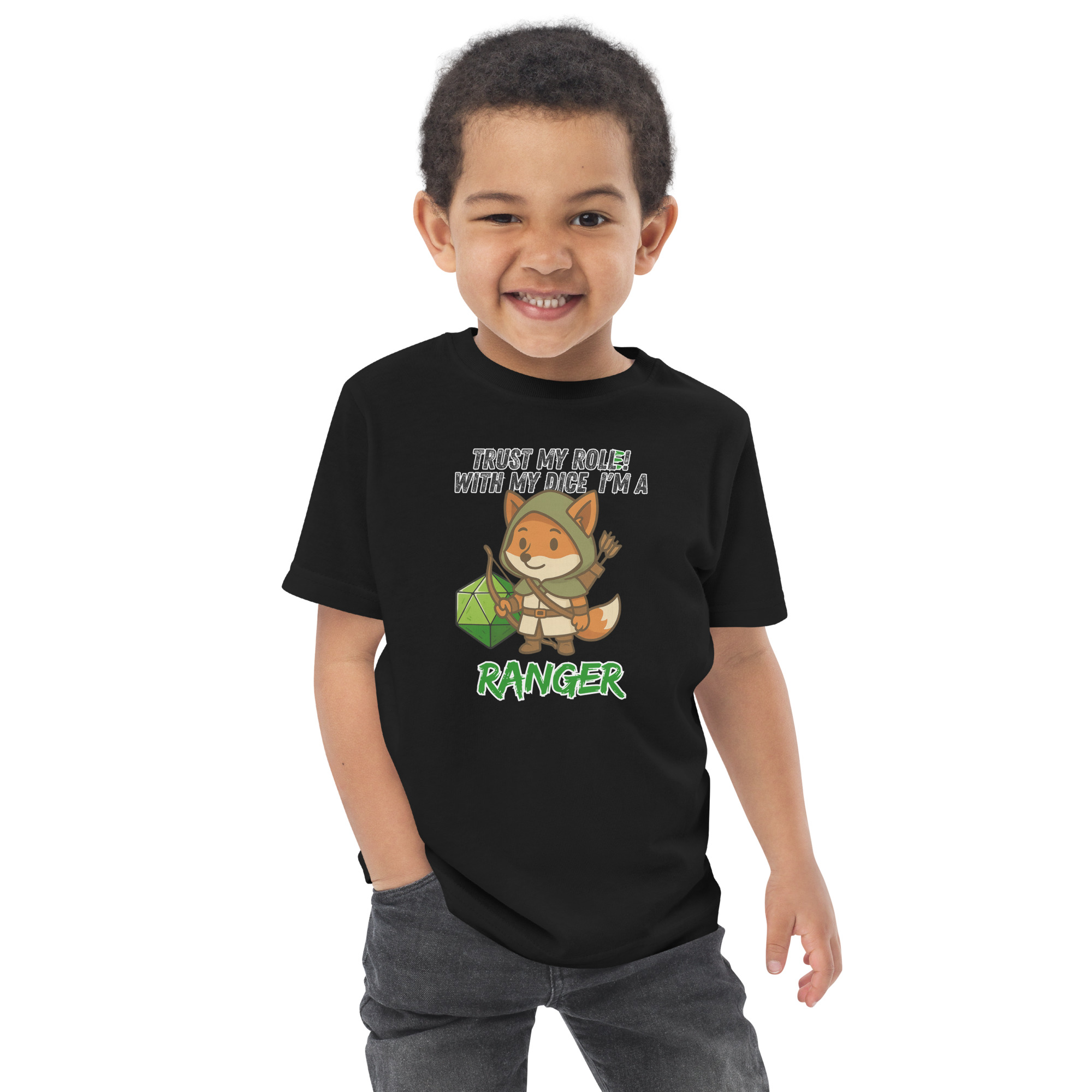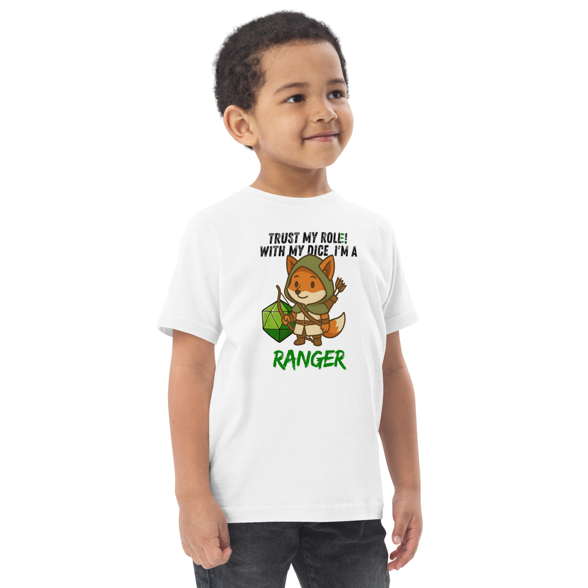 Vertraue seinem Wurf! Mit seinem Bogen und seinem W20 ist er treffsicher wie kaum ein anderer. Dieses Design ist Teil der “DiceFox – Trust my roll(e)” Serie.