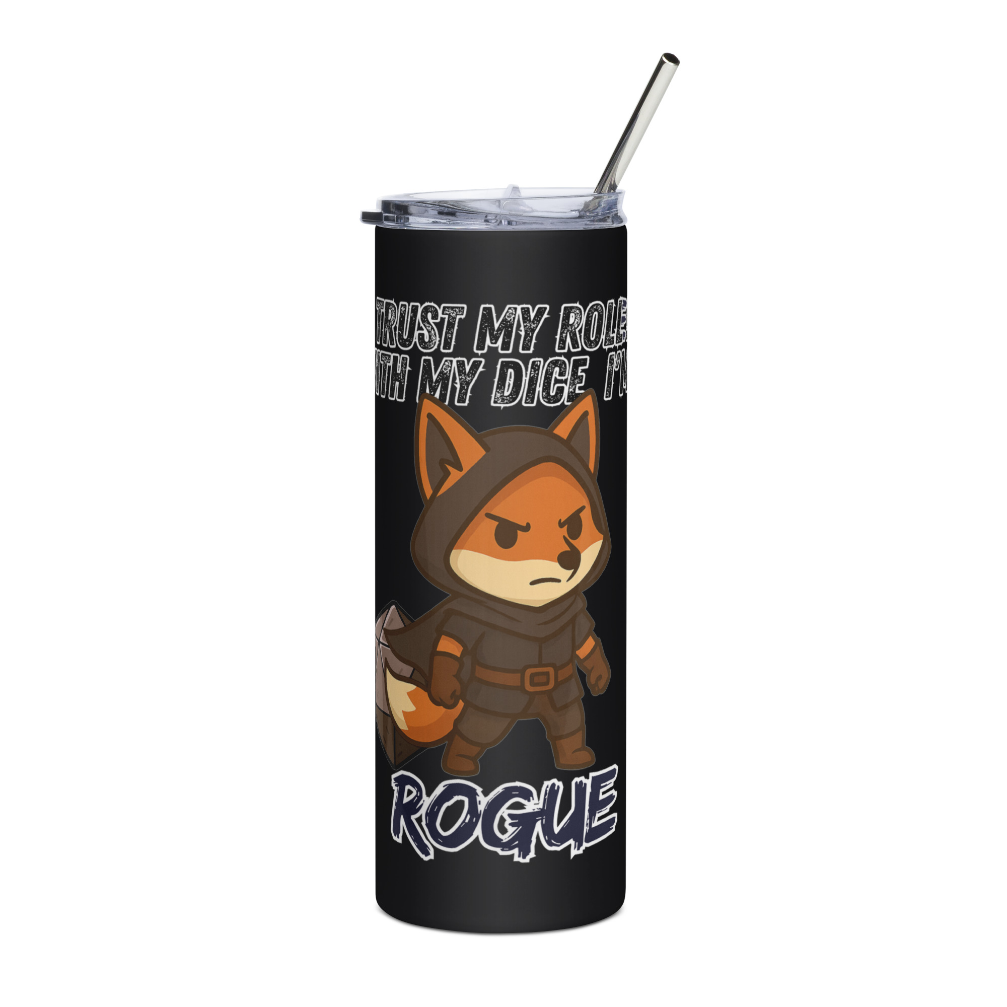 Vertraue dem Wurf des Schurken! Mit seinem W20 spielt der listige Fuchs stets seine Rolle perfekt aus! Dieses Design ist Teil der “DiceFox – Trust my roll(e)” Serie.
