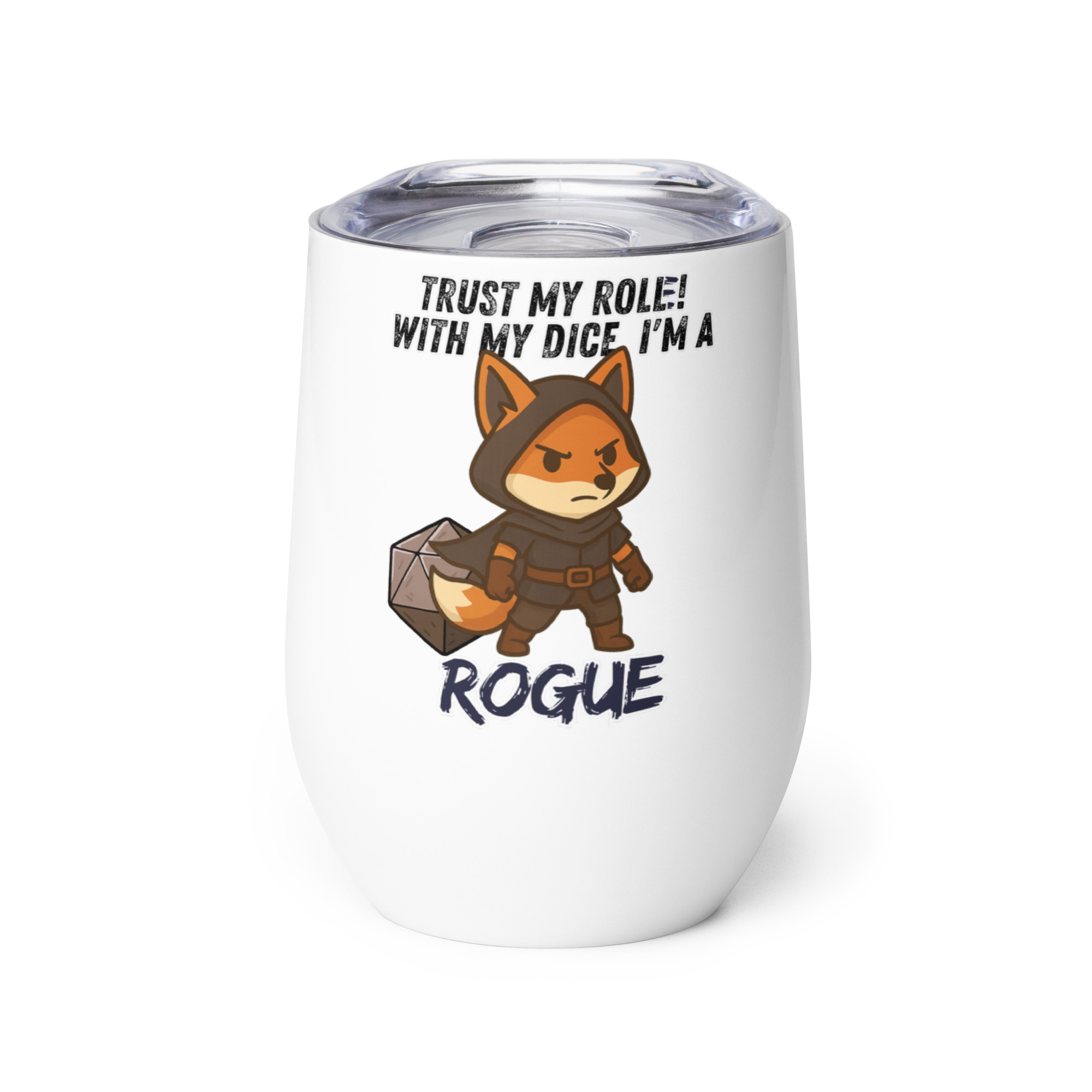 Vertraue dem Wurf des Schurken! Mit seinem W20 spielt der listige Fuchs stets seine Rolle perfekt aus! Dieses Design ist Teil der “DiceFox – Trust my roll(e)” Serie.