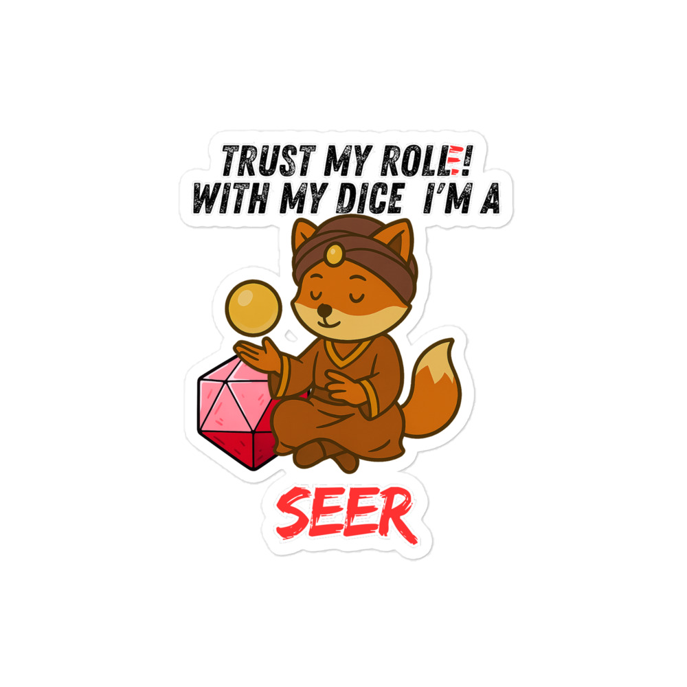 Vertraue dem Wurf des Sehers! Er wirft die Knochen, liest aus Teetassen und rollt den W20, um für dich die Linien der Zukunft zu sehen. Dieses Design ist Teil der “DiceFox – Trust my roll(e)” Serie.
