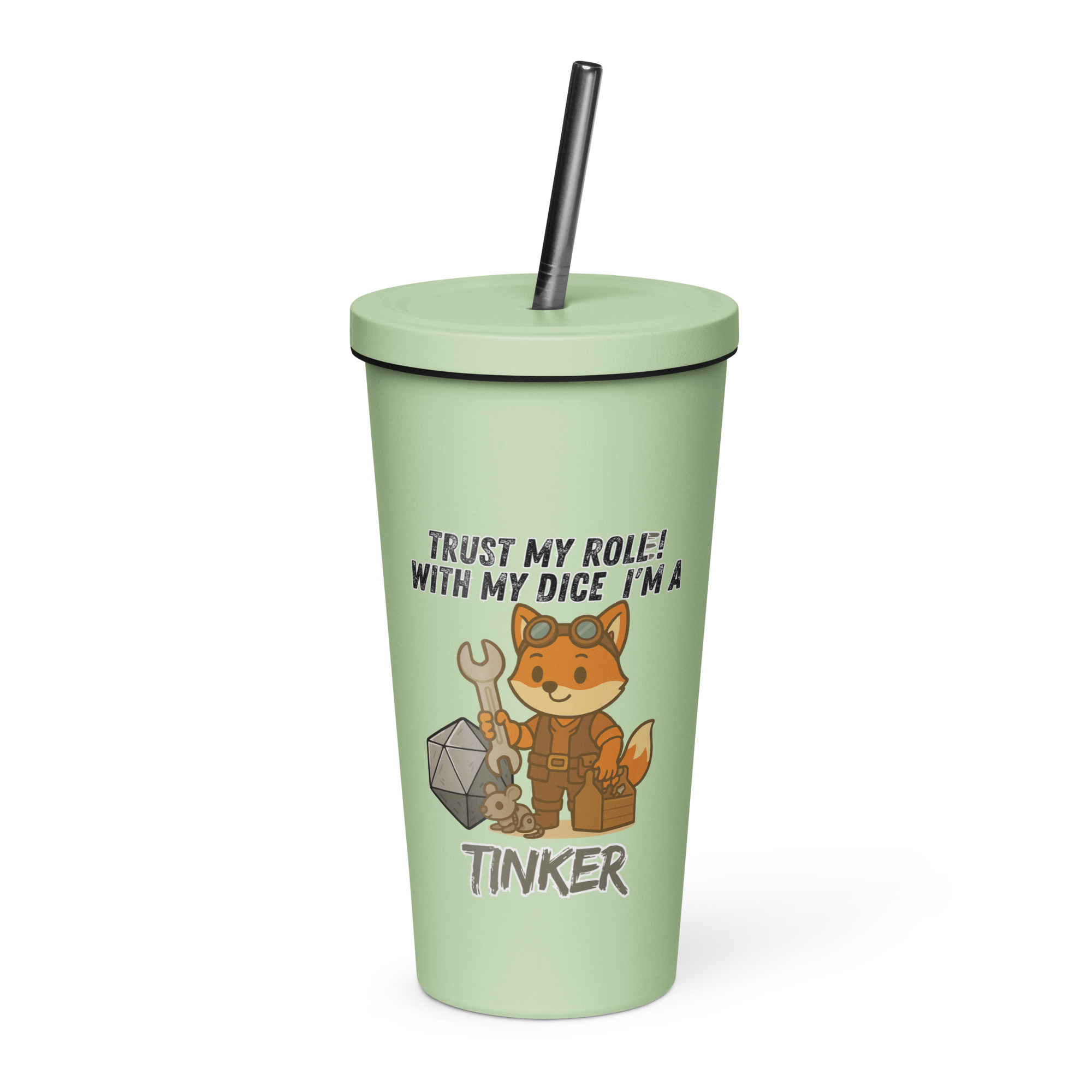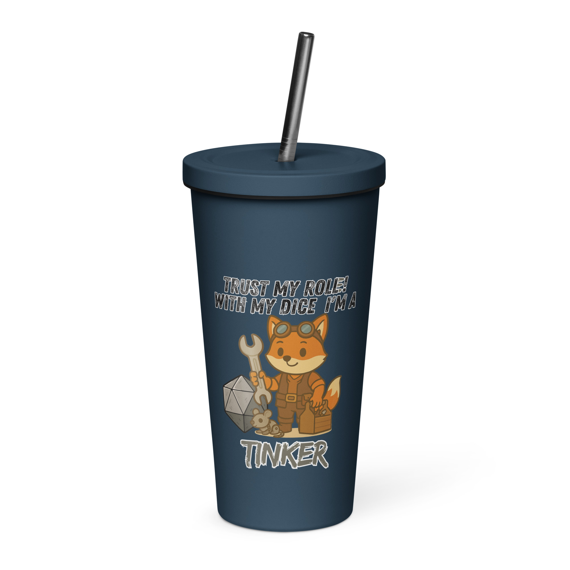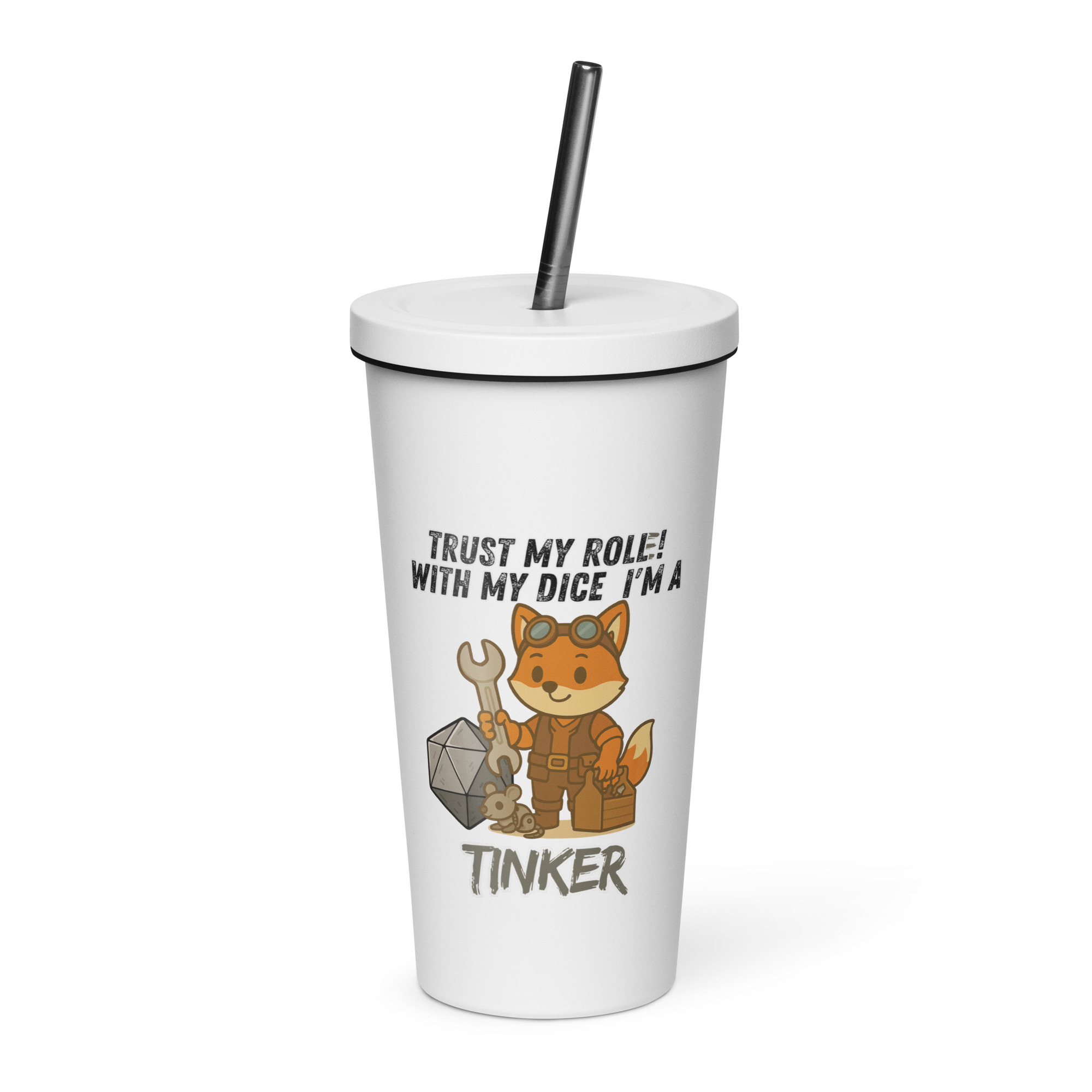 Vertraue dem Wurf des Bastlers! Dieser Fuchs hat an seinem W20 geschraubt und ihn optimiert, jeder Wurf ein kritischer Erfolg. Dieses Design ist Teil der “DiceFox – Trust my roll(e)” Serie.
