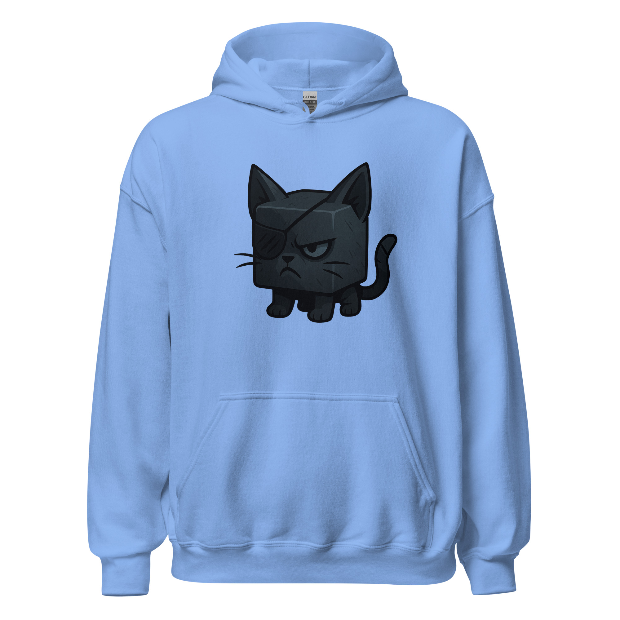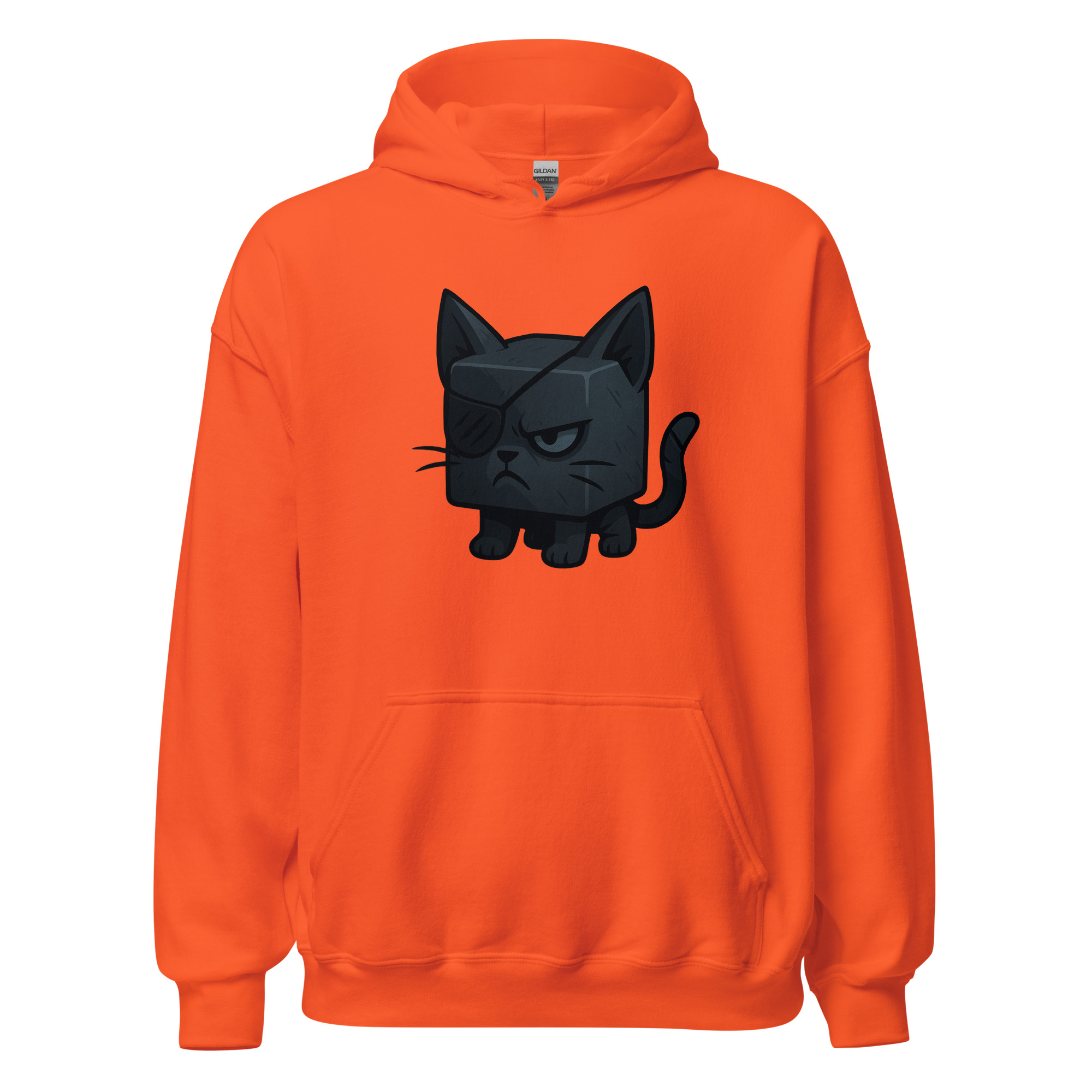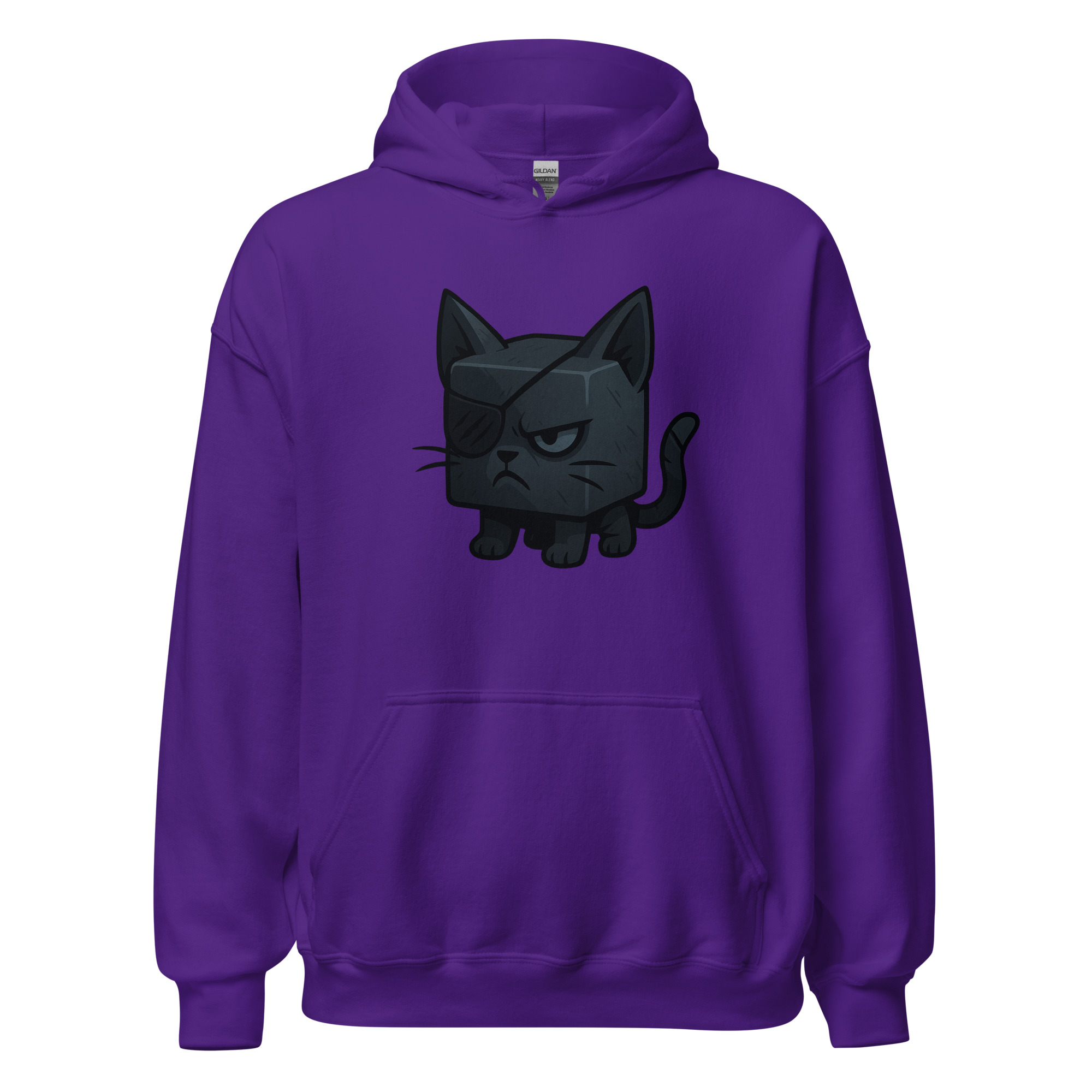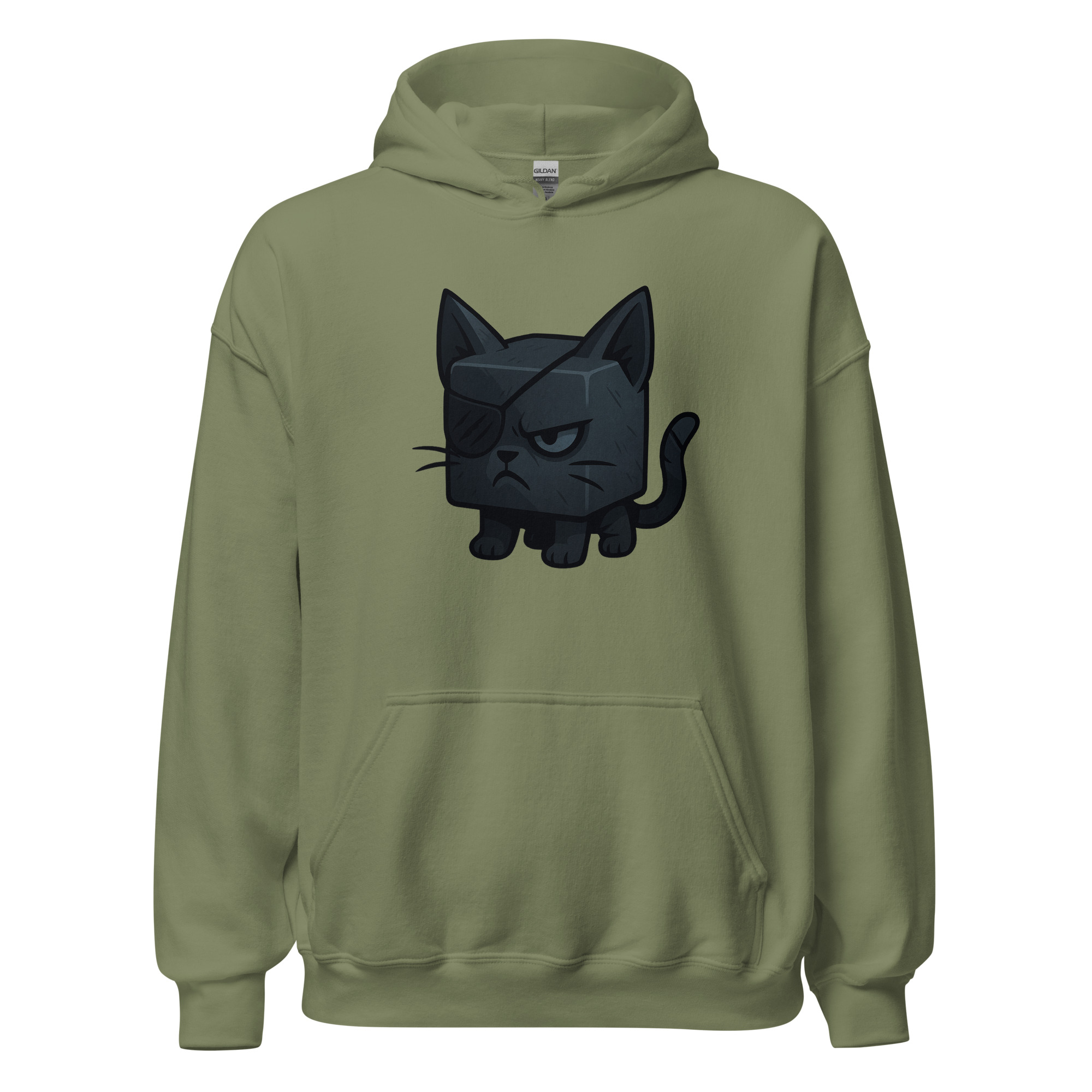 Ein Würfelkater mit grimmigem Blick und Augenklappe. Teil der Dicemals Reihe, einer Serie von Würfeltieren im Dark Cute Style.