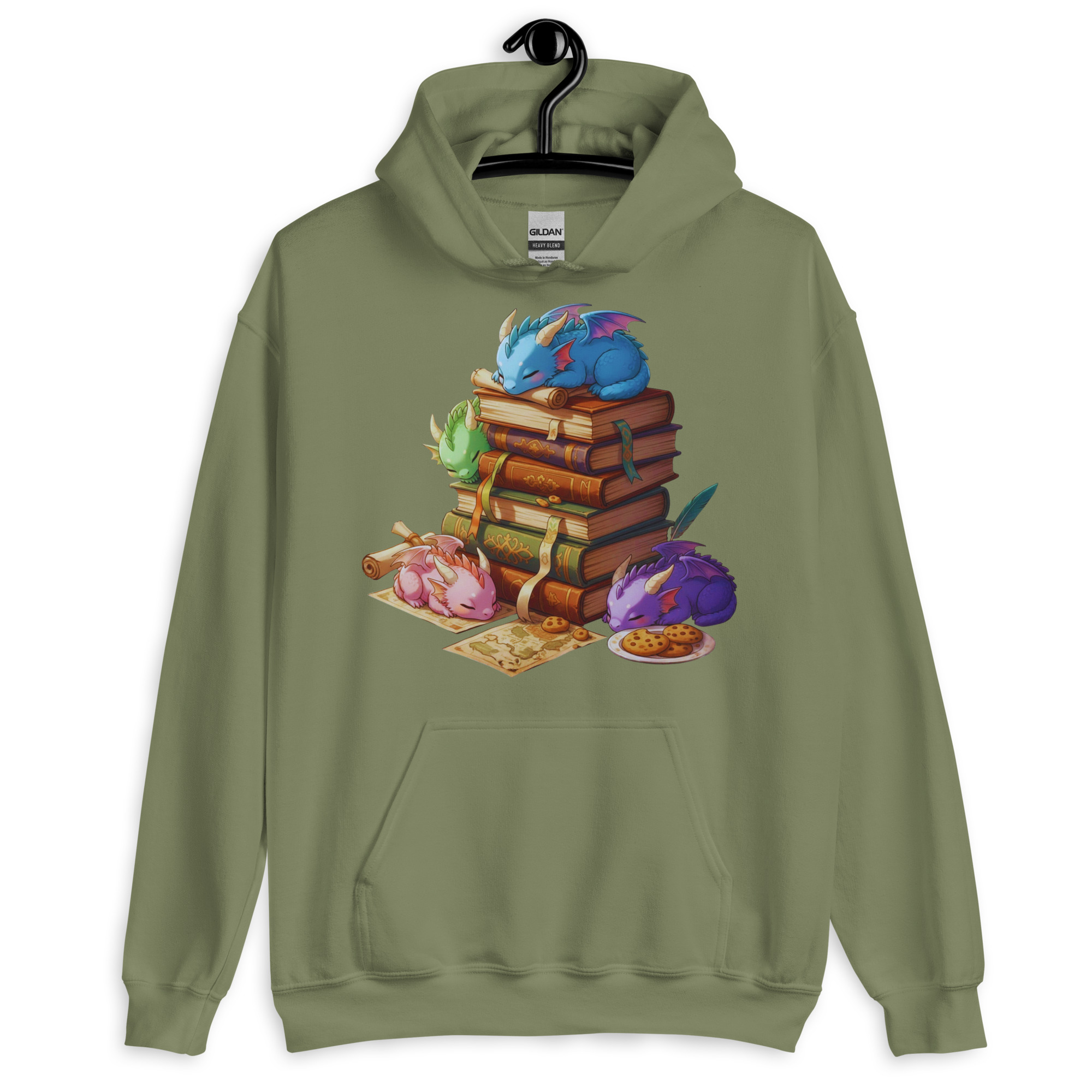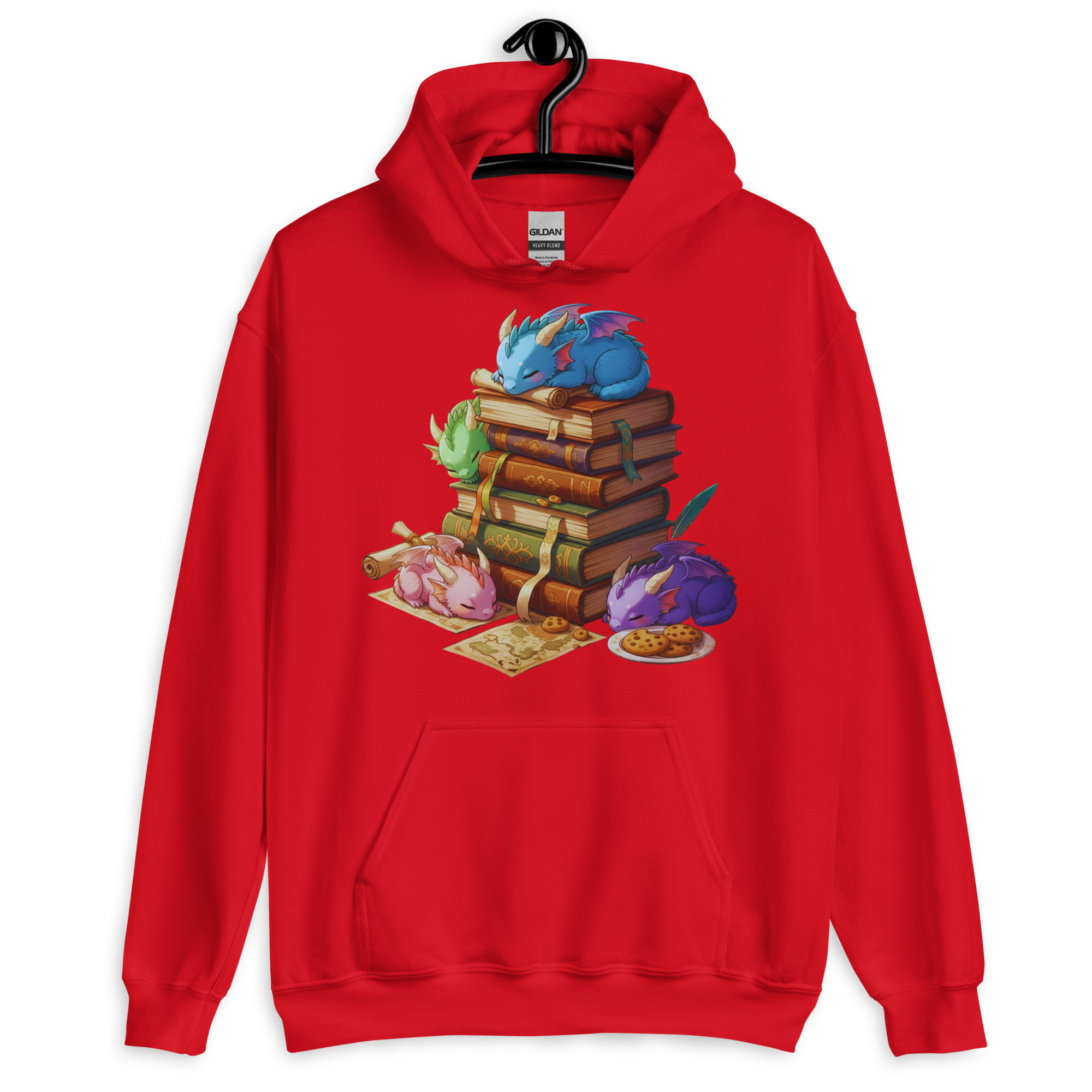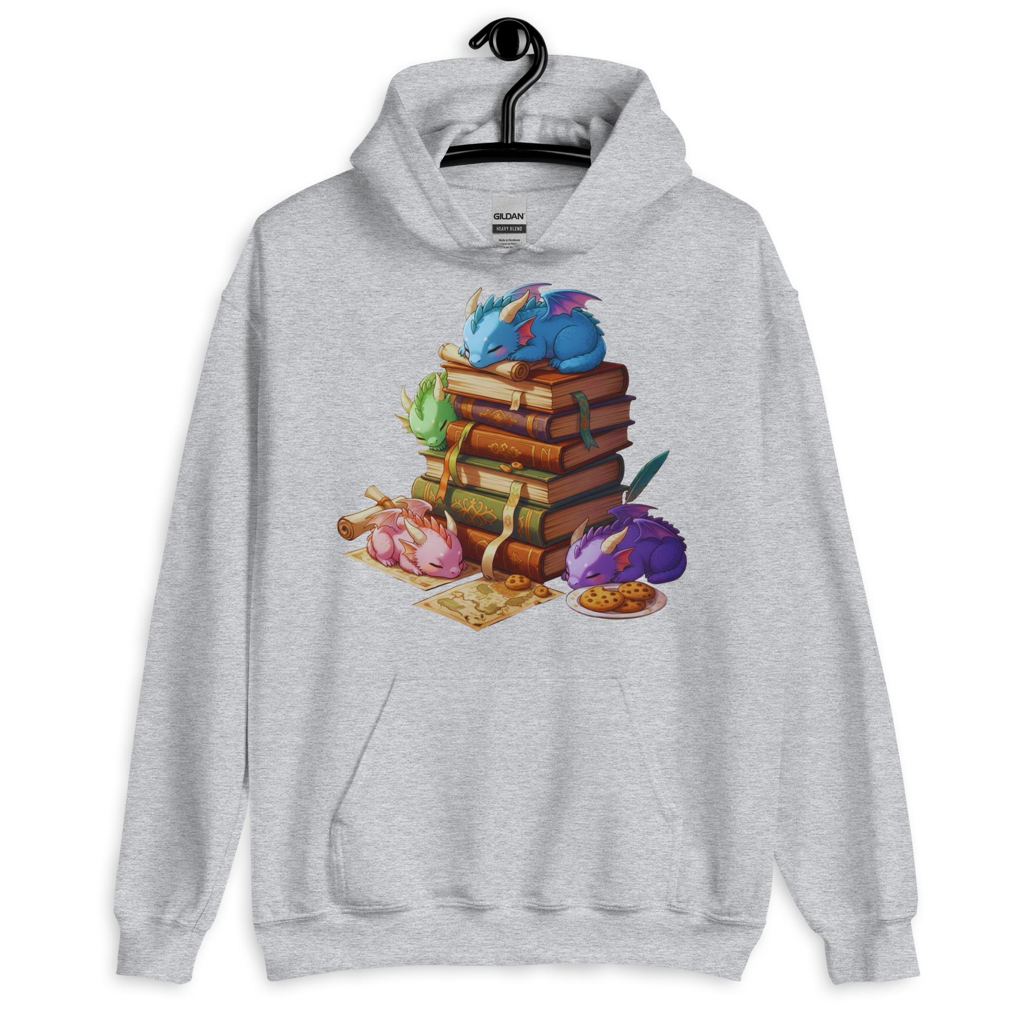 Dieses Design zeigt eine Gruppe schlafender Baby-Drachen im detailreichen Anime-Stil, die es sich auf einem Stapel antiker Zauberbücher bequem gemacht haben. Perfekt für alle, die das Besondere suchen und ihre Liebe zu Büchern und Drachen zeigen wollen.