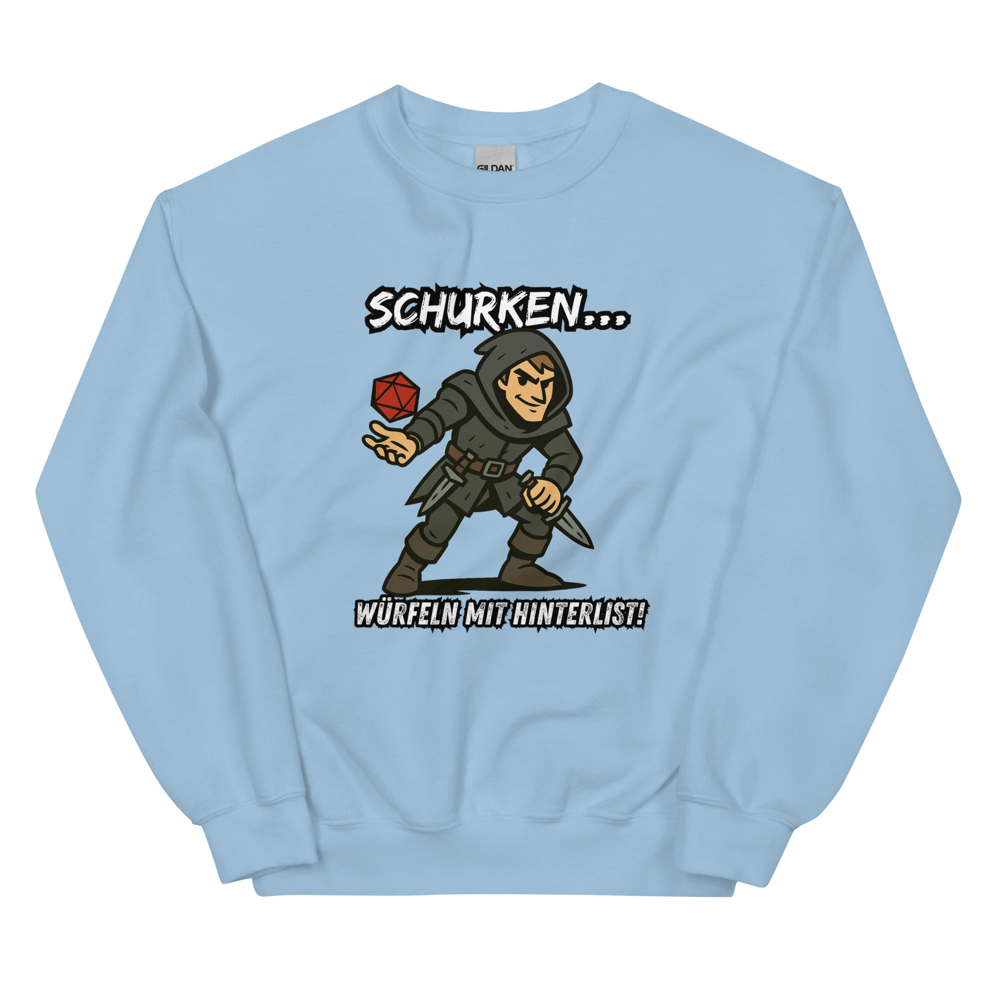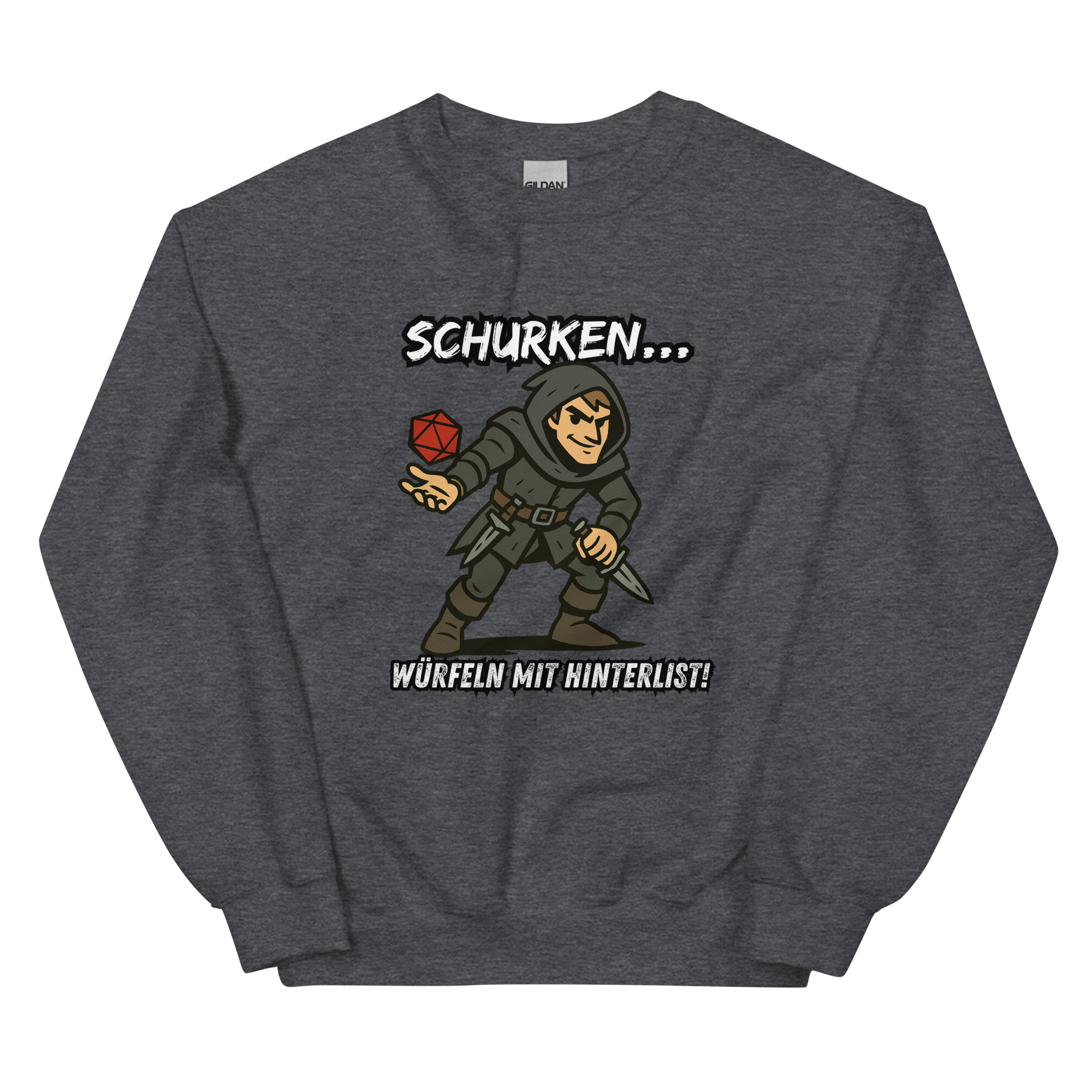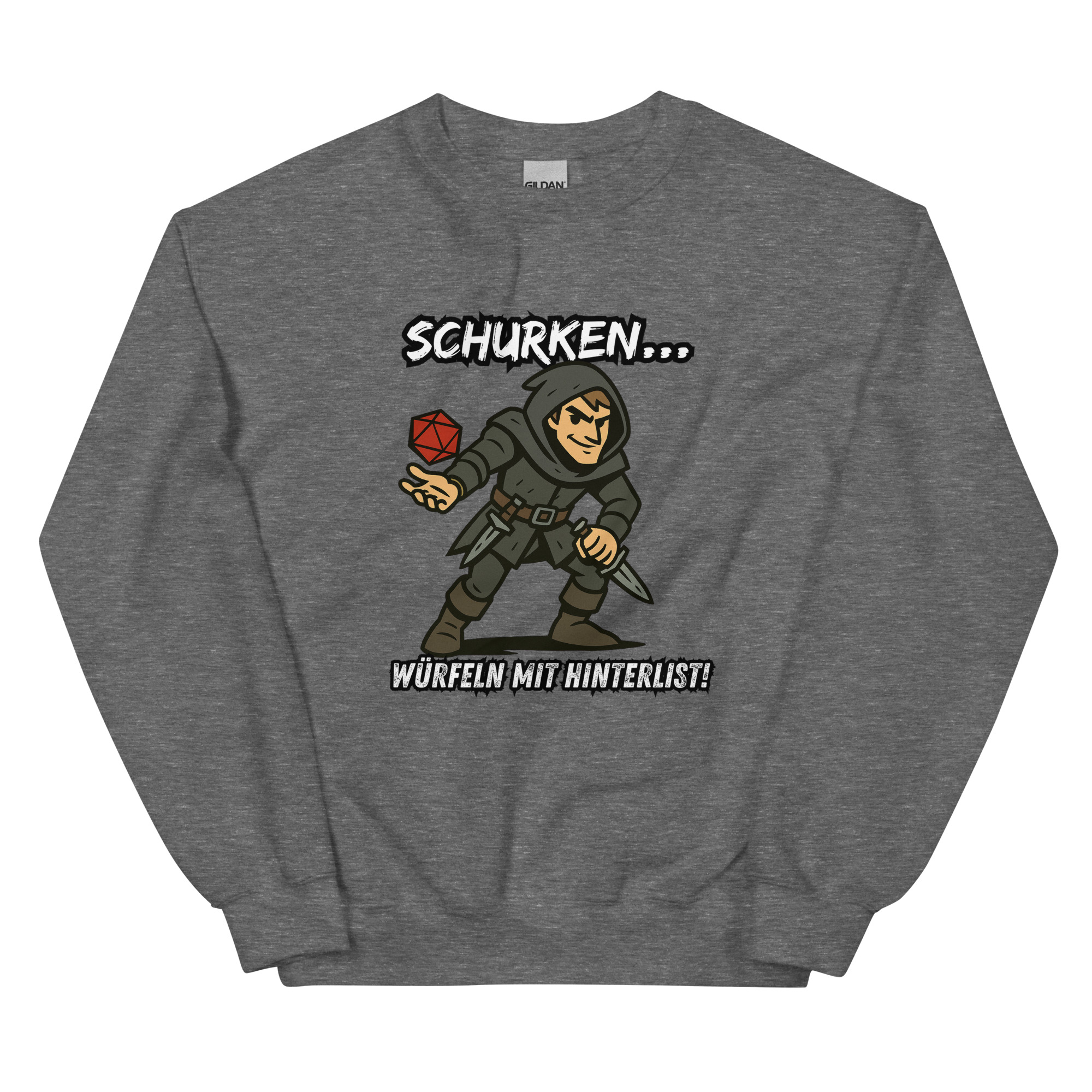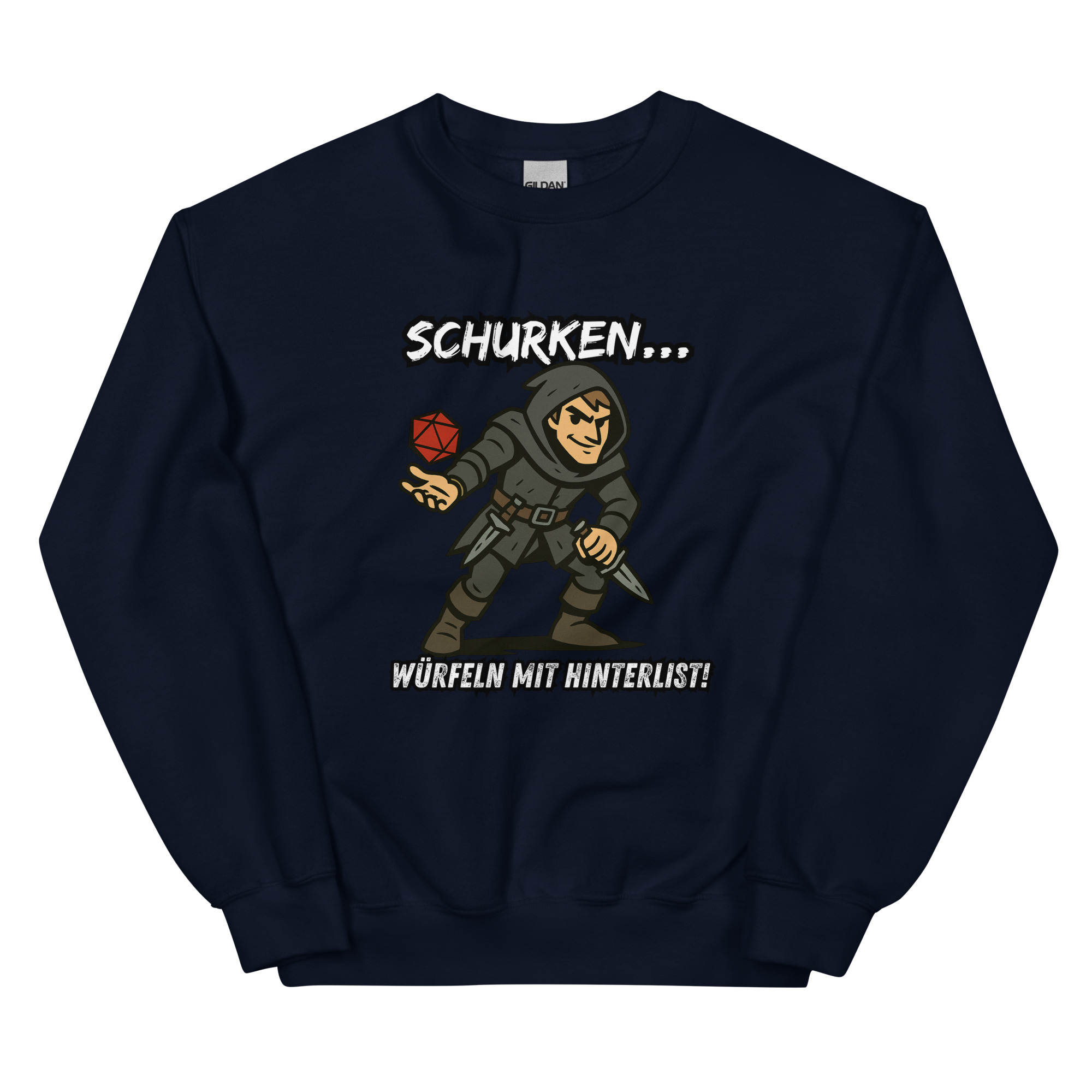 Ein robustes und warmes Sweatshirt, mit dem Design “Schurken würfeln mit Hinterlist!”, das dich in den kälteren Monaten warm hält. Ein vorgeschrumpfter Pullover mit klassischer Passform aus Airjet-Garn für ein weiches Tragegefühl.