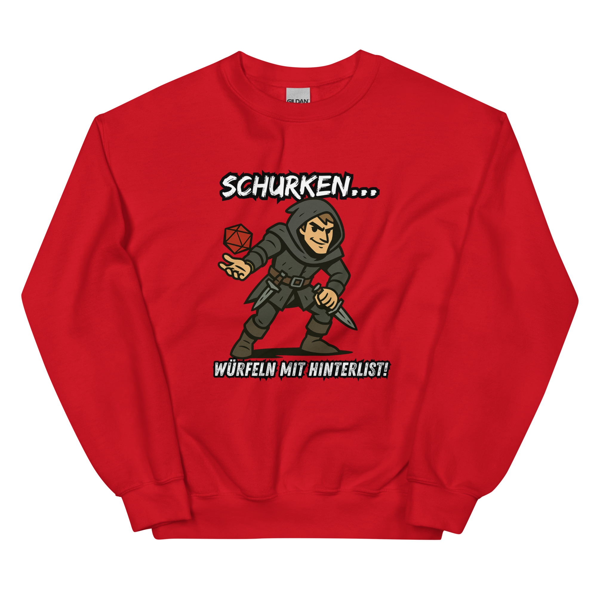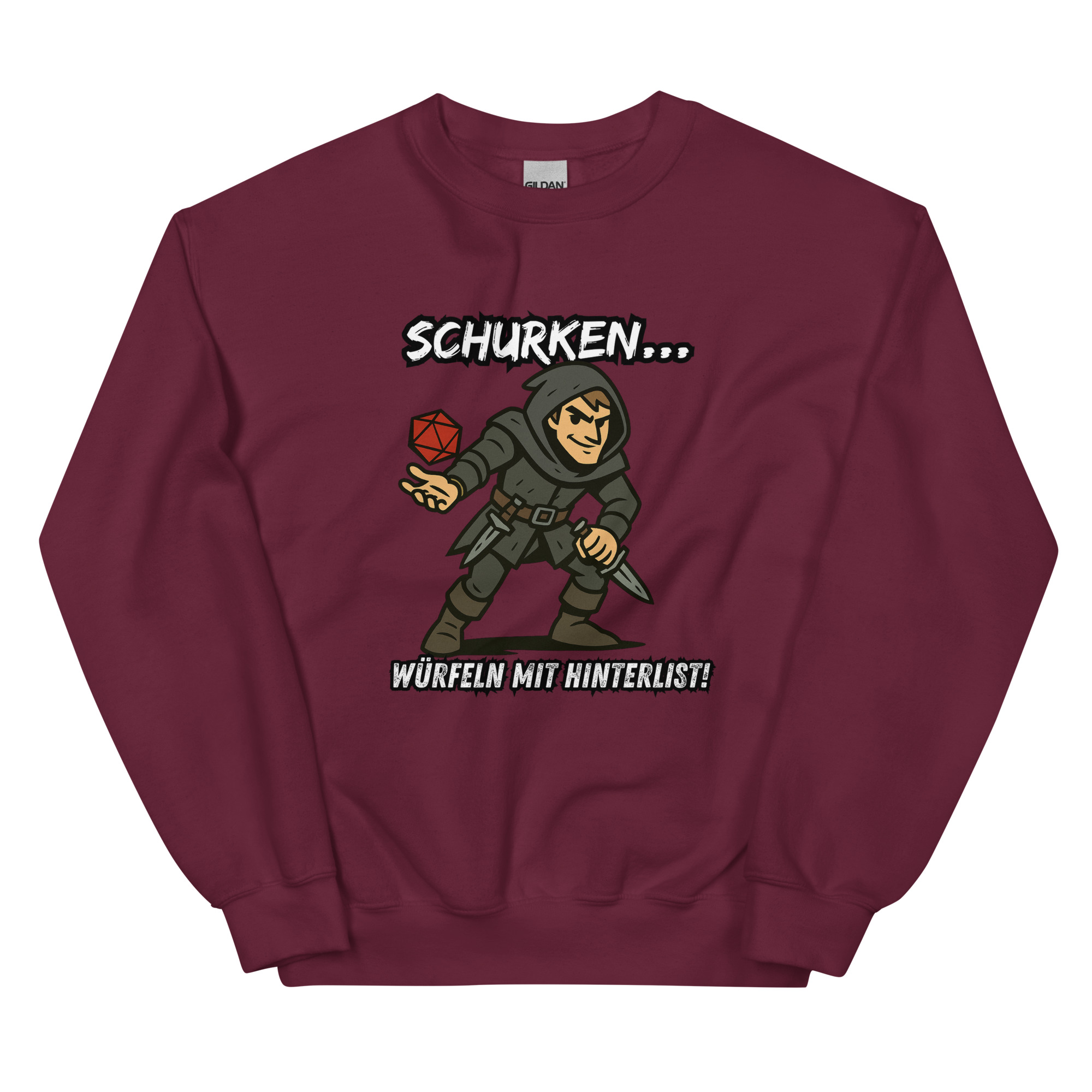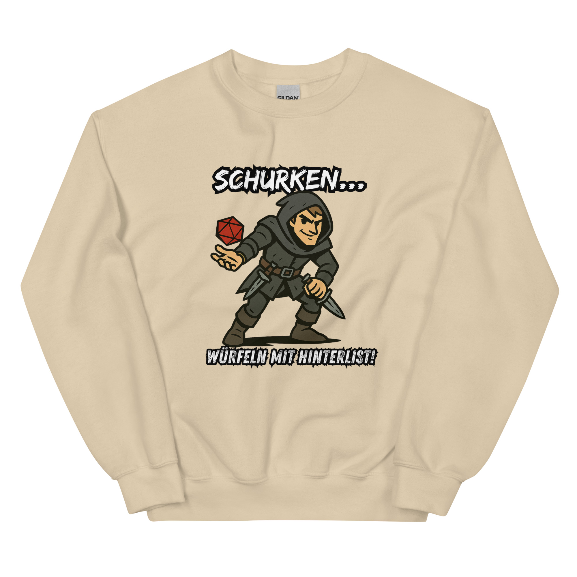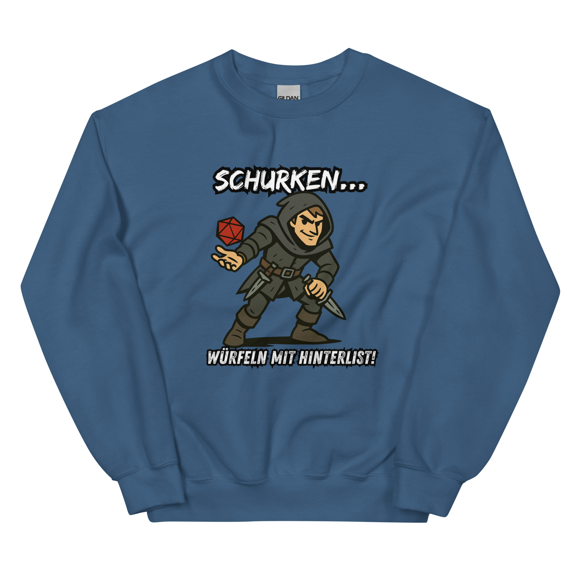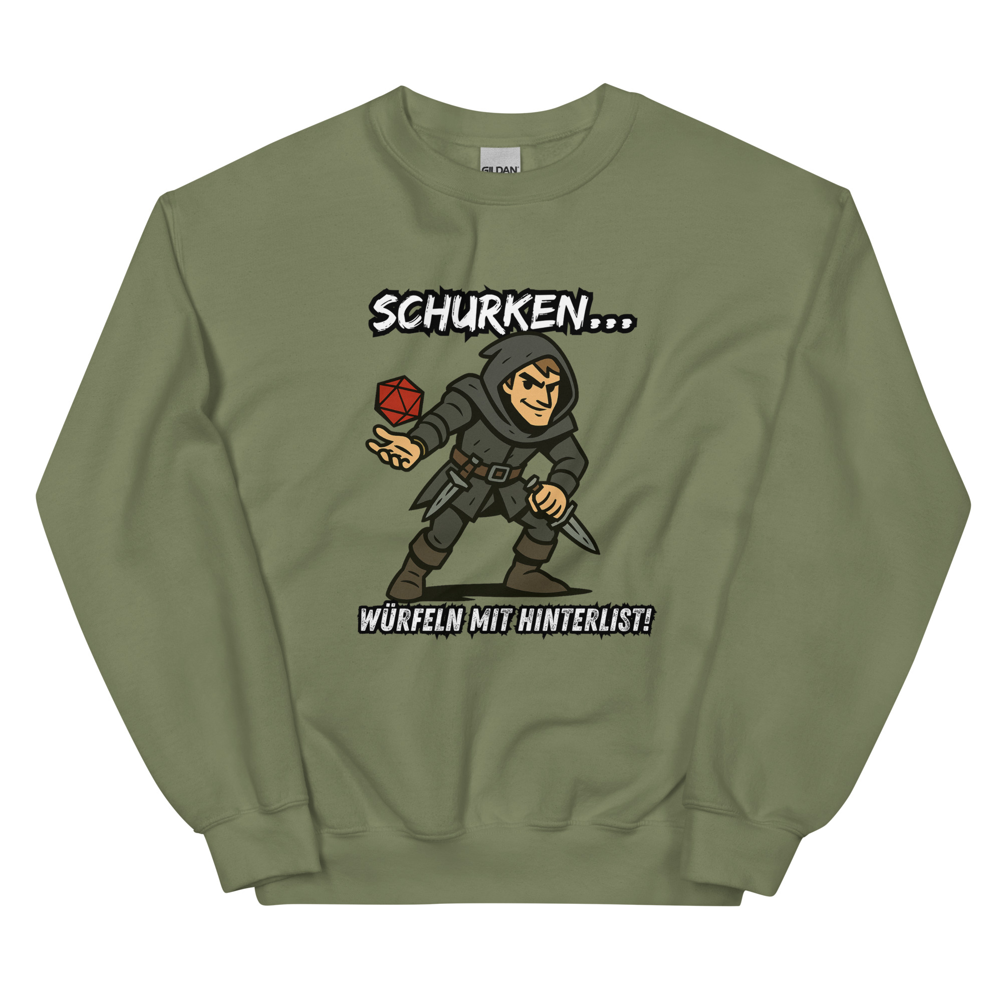 Ein robustes und warmes Sweatshirt, mit dem Design “Schurken würfeln mit Hinterlist!”, das dich in den kälteren Monaten warm hält. Ein vorgeschrumpfter Pullover mit klassischer Passform aus Airjet-Garn für ein weiches Tragegefühl.
