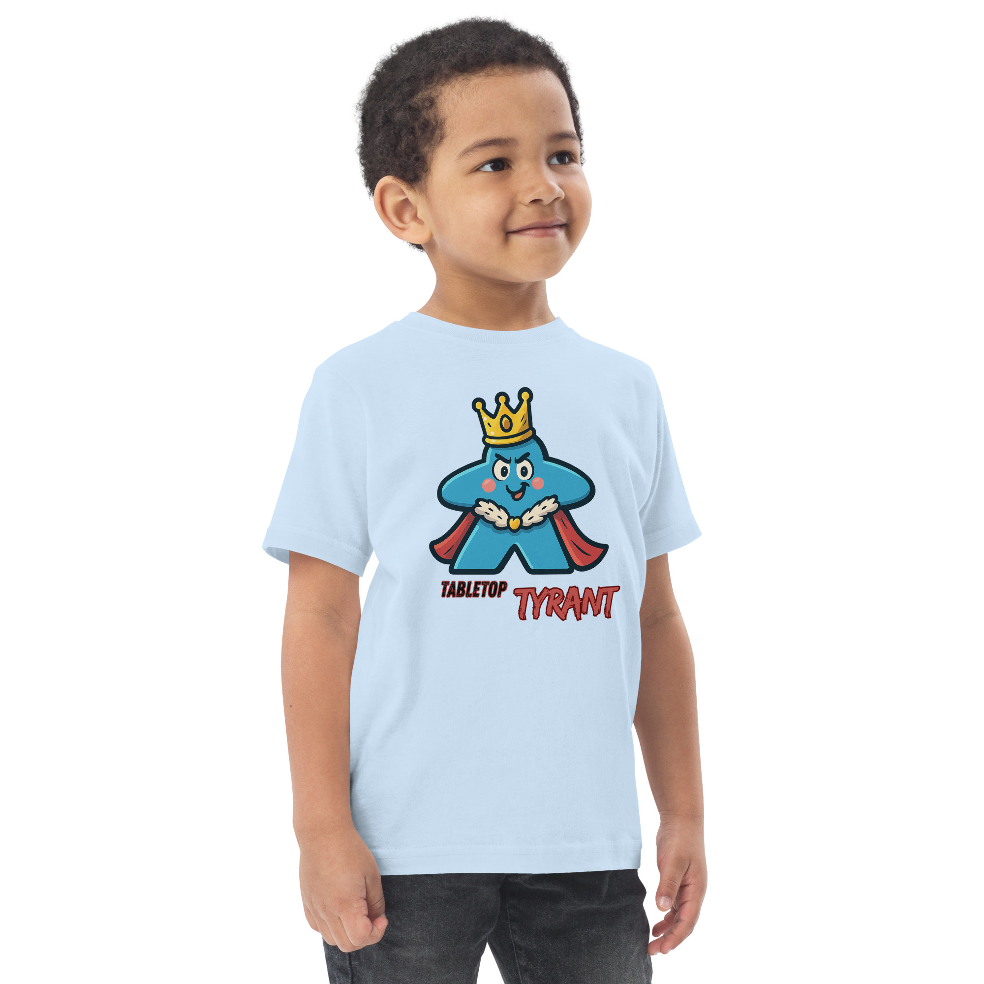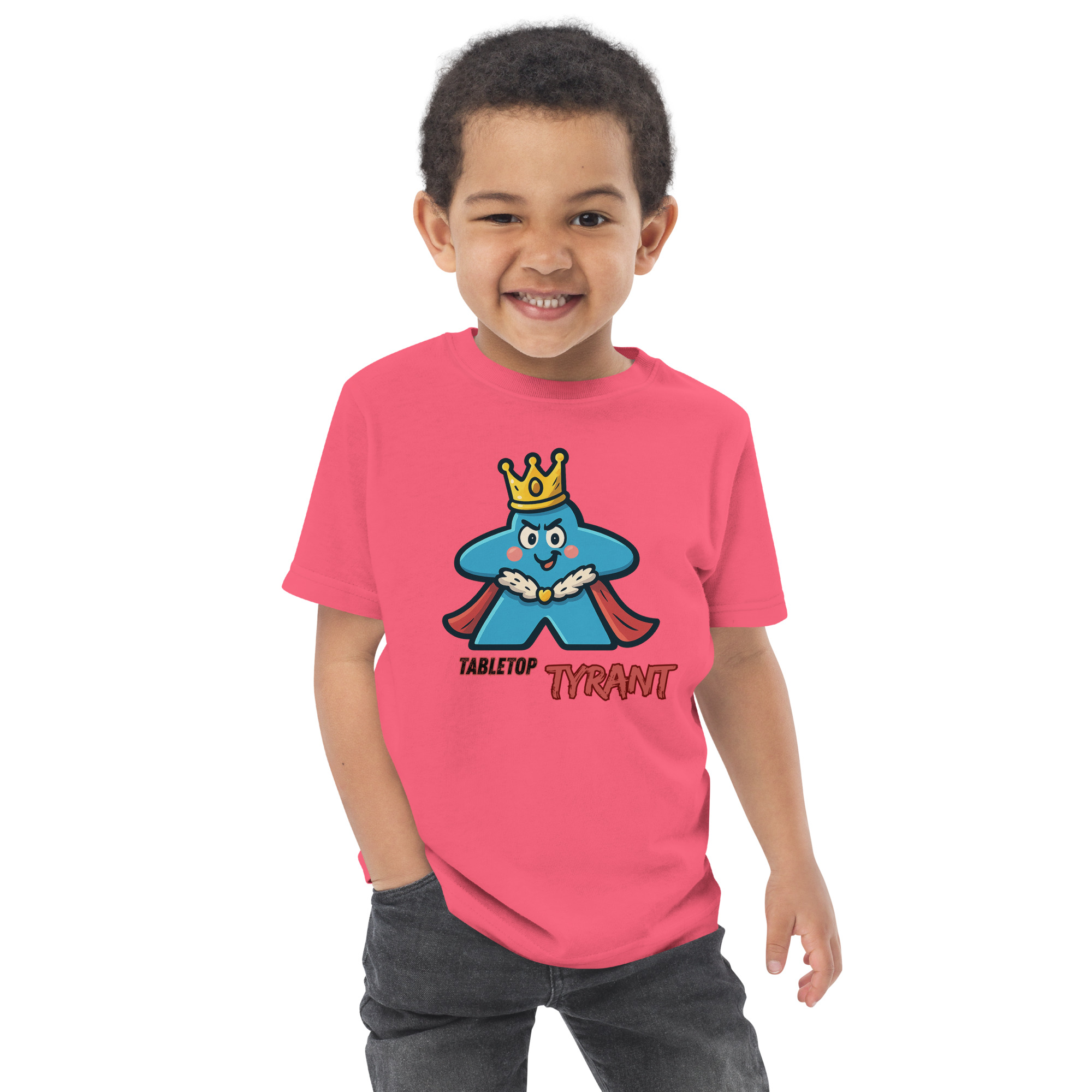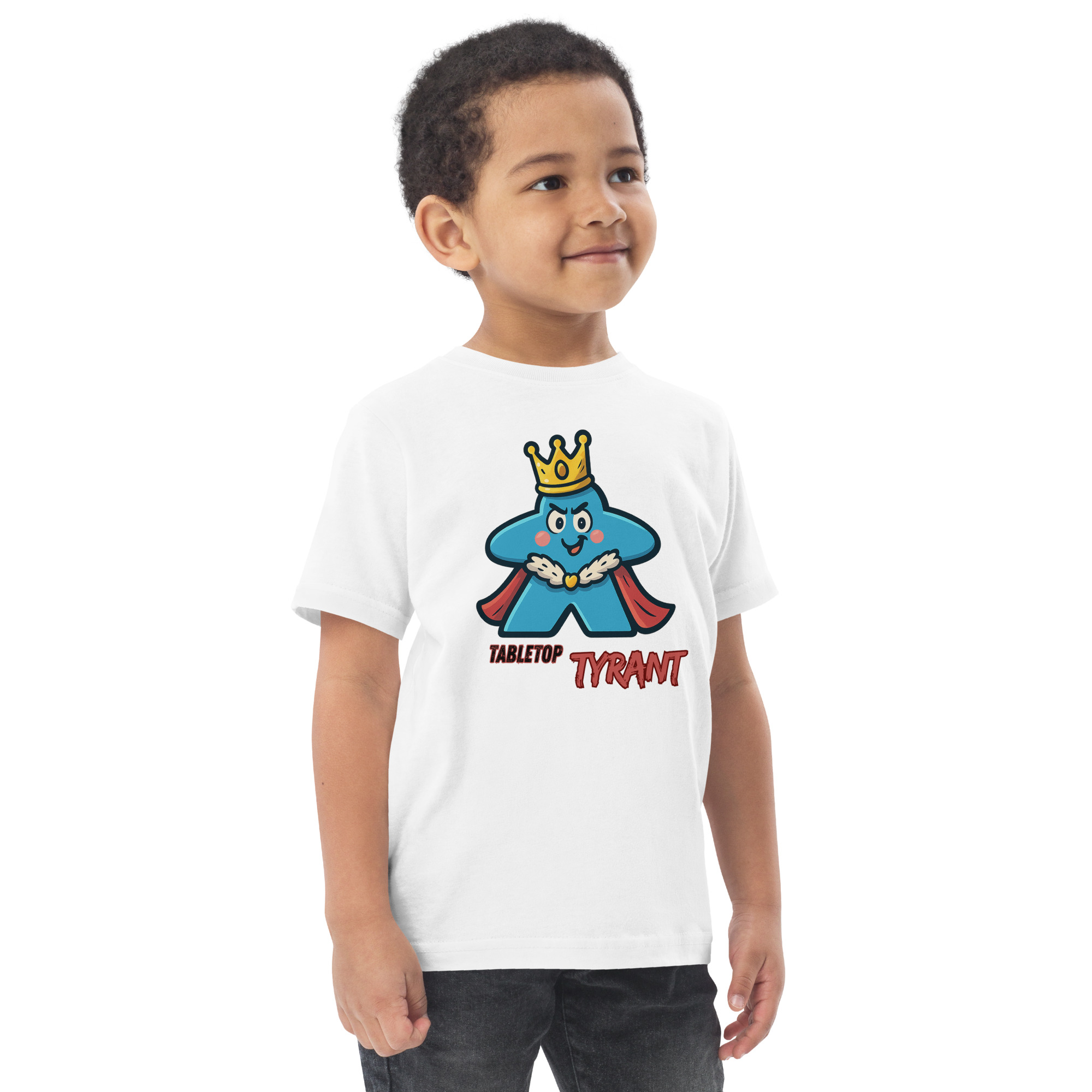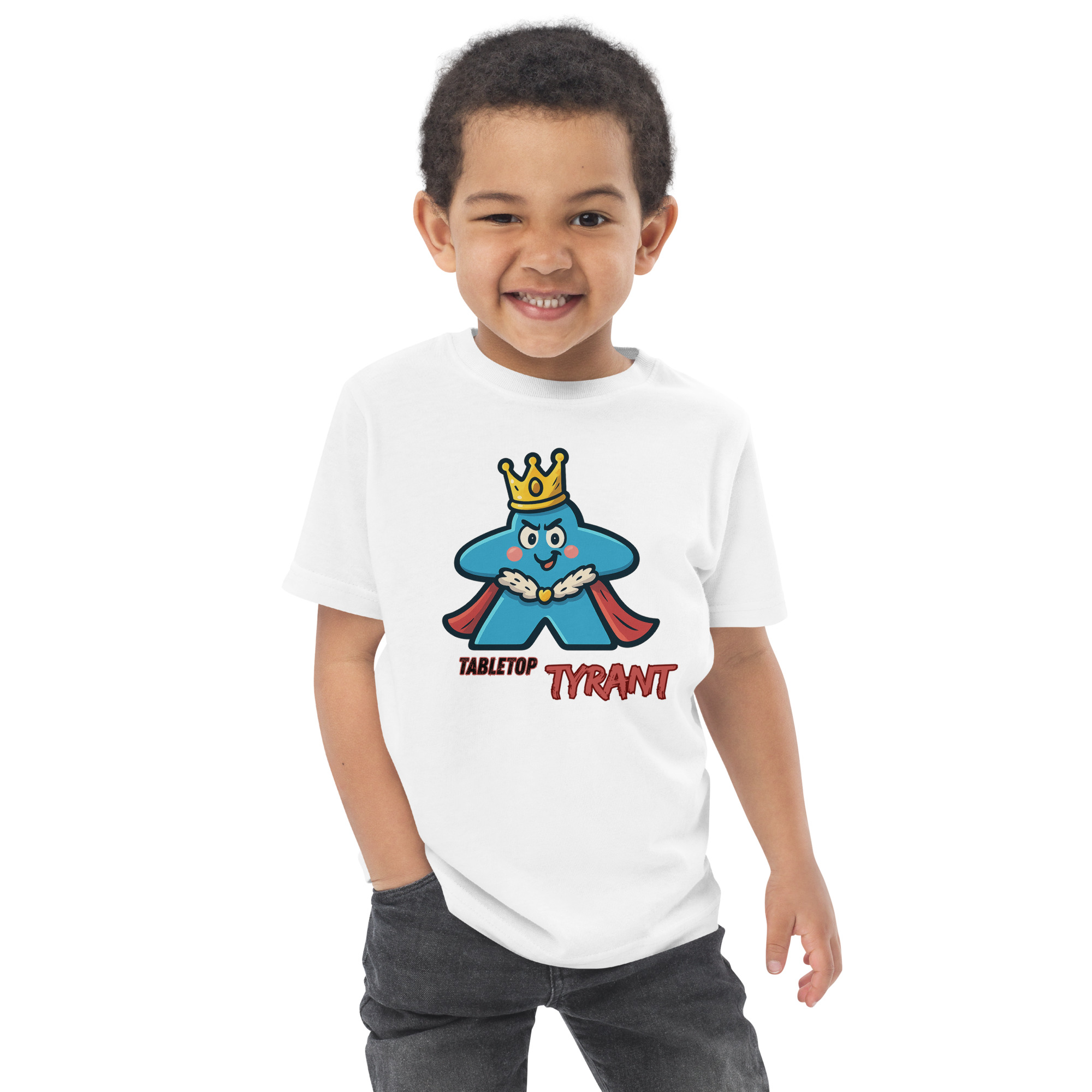 Ein selbstbewusster Tyrann mit Krone in Meeple-Form – ideal für Brettspiel-Fans.